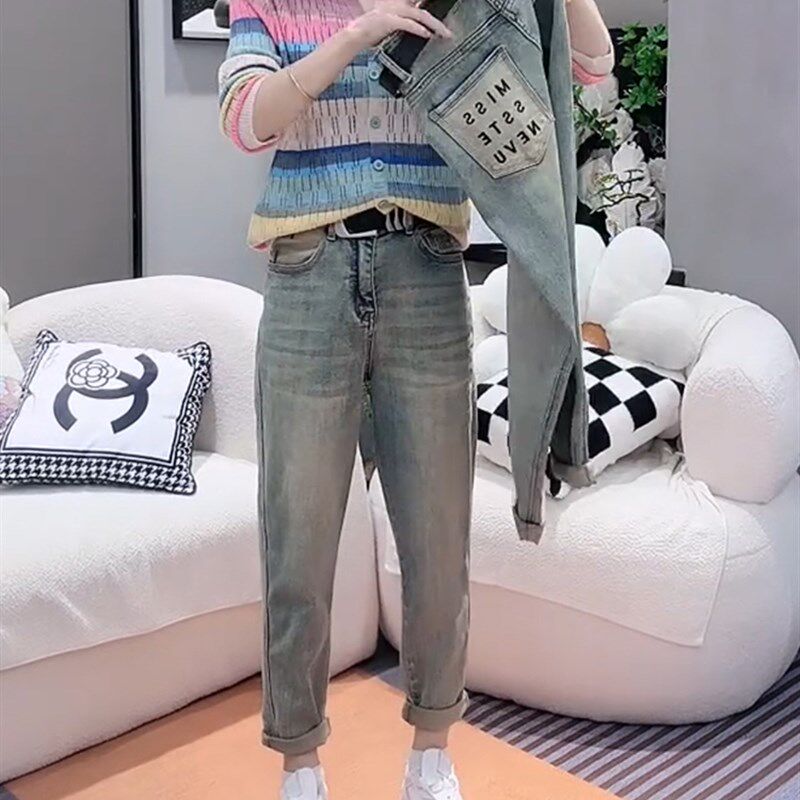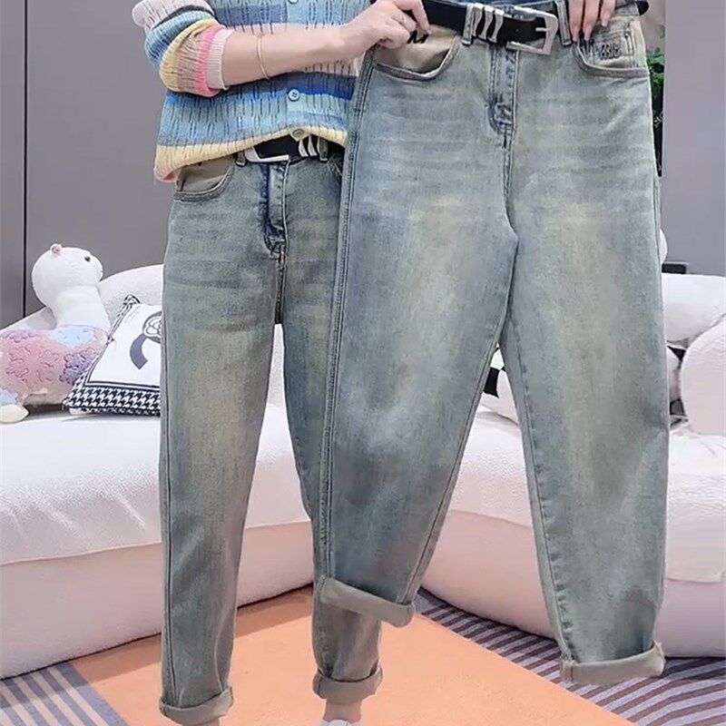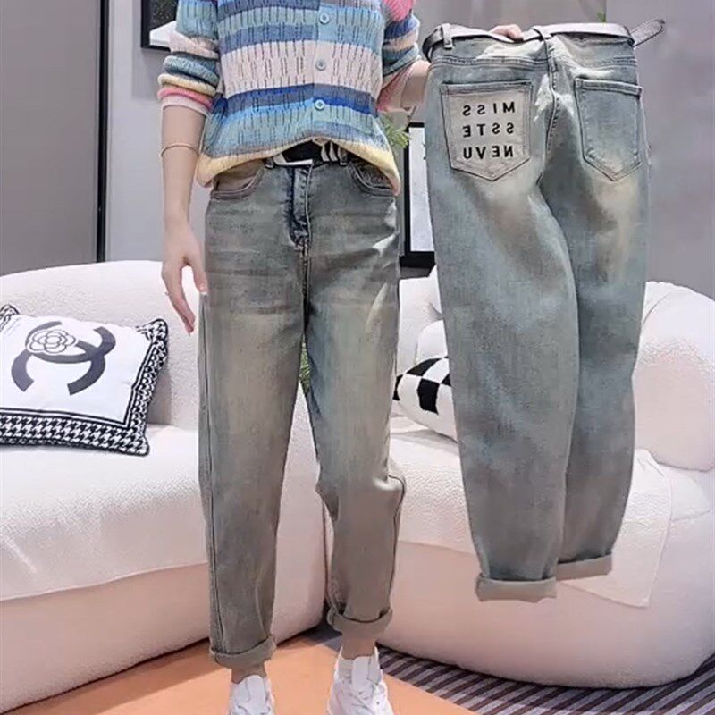 📚 大码牛仔裤女夏季薄款2024年新款爆款哈伦裤胖mm显瘦九分老爹裤子