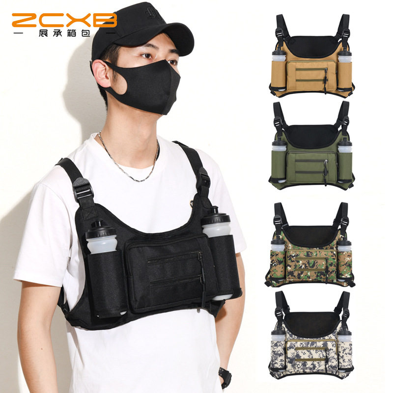 📚 户外出行运动跑步男胸包军迷战术迷彩双水壶手机一体包马甲胸前包