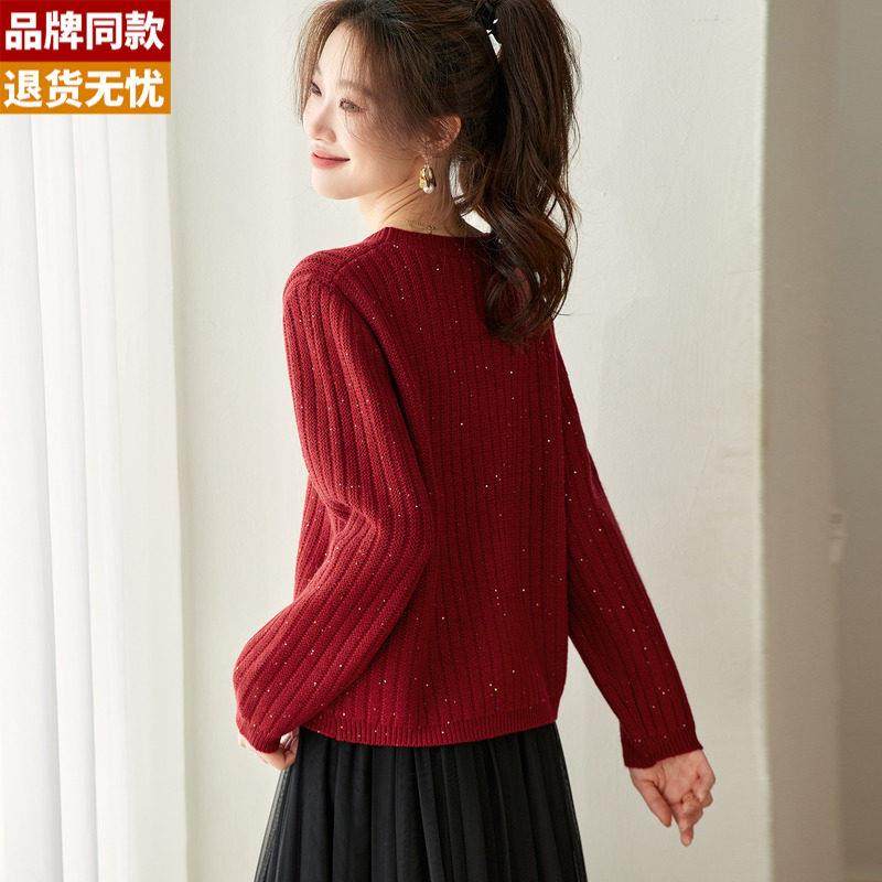📚 低领红色毛衣女秋冬可外穿2025新款高腰短款配裙子内搭羊毛打底衫