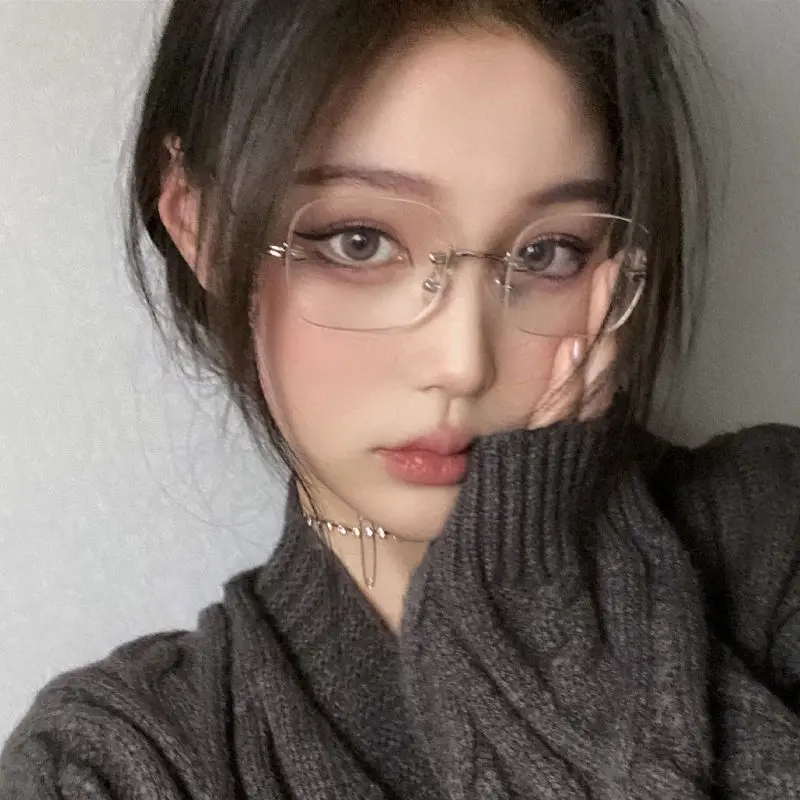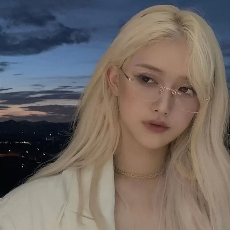 📚 jennie同款超轻无框潮流眼镜女近视韩版防蓝光网红GM同款平光镜框