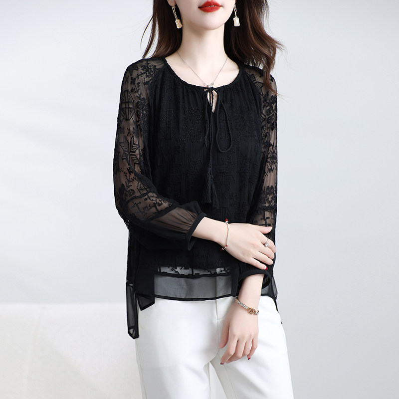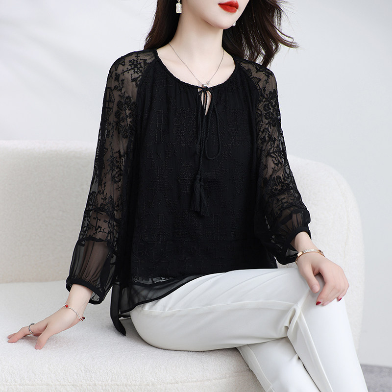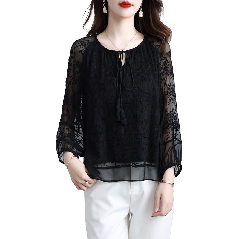 📚 新款杭州高端真丝上衣女中年妈妈气质桑蚕丝T恤优雅刺绣洋气春夏