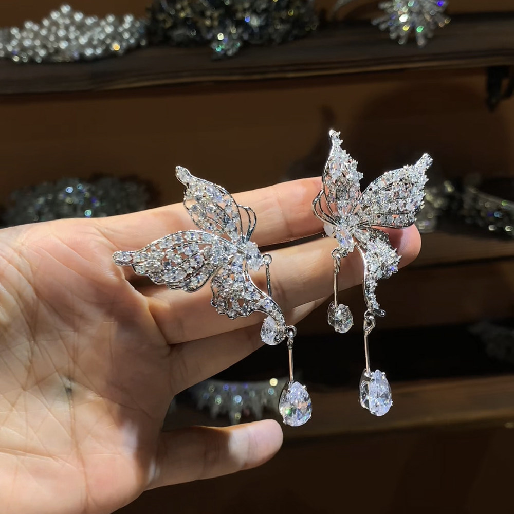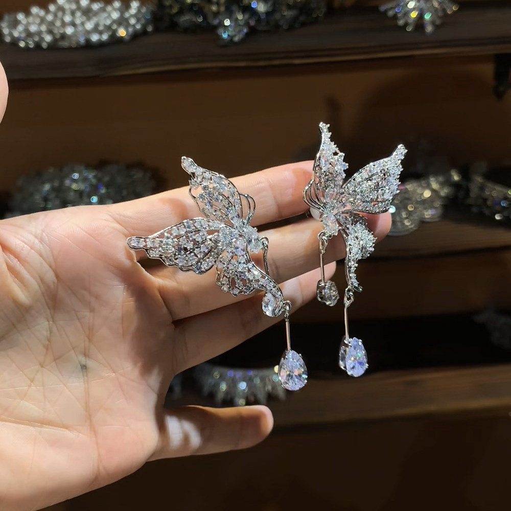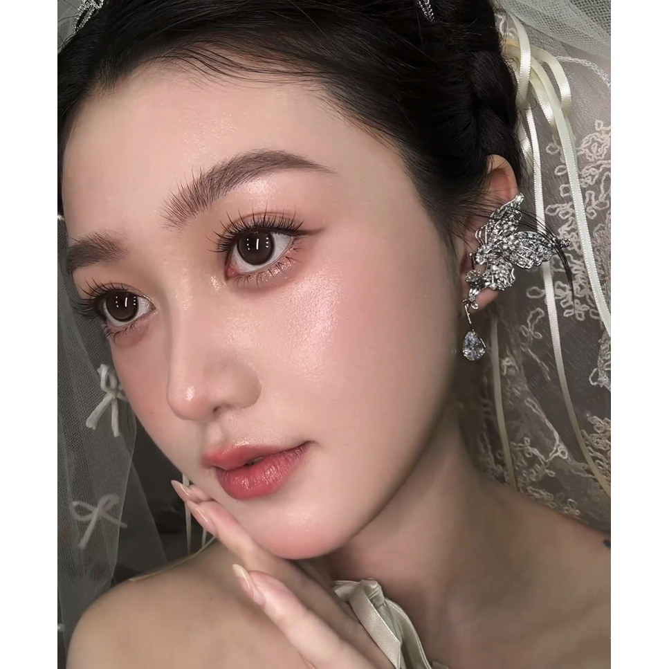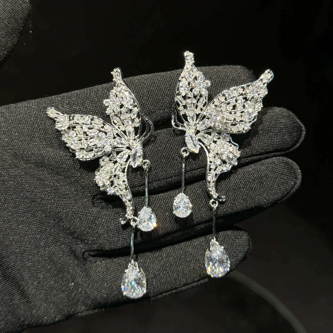 📚 韩式新娘高级感水钻蝴蝶耳骨夹耳环奢华婚纱礼服秀场晚宴耳夹耳饰