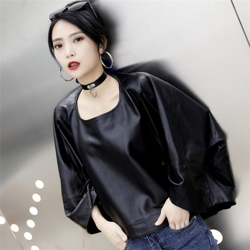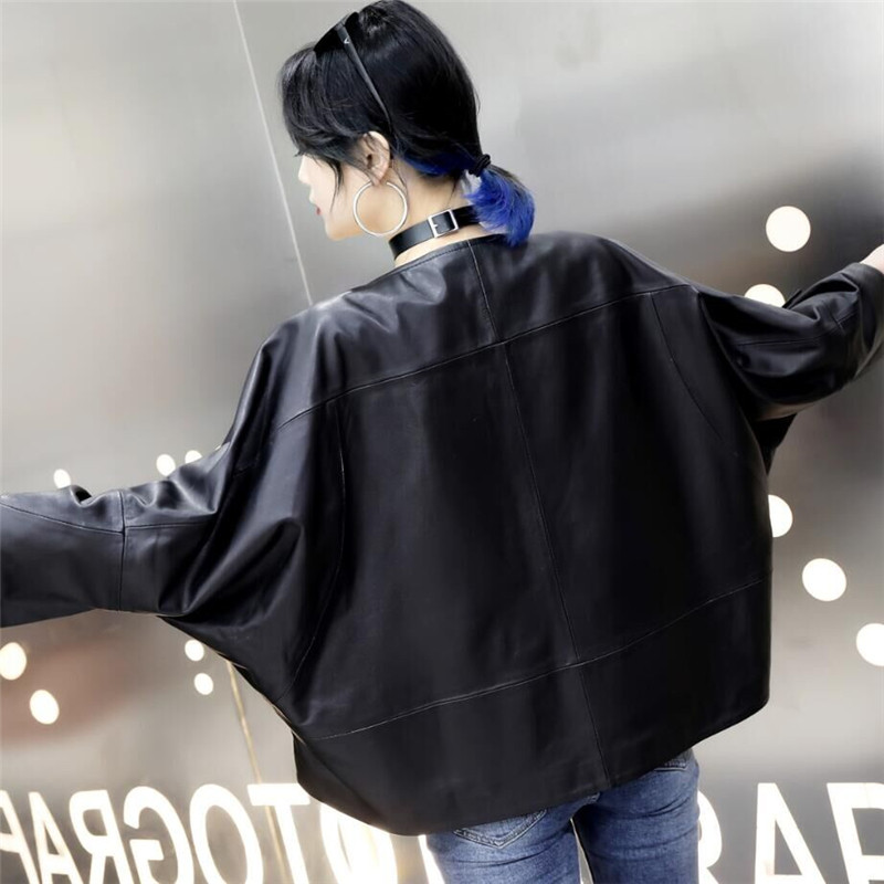 📚 2025秋新款绵羊皮皮衣韩版大码蝙蝠衫女真皮皮夹克蝙蝠袖斗篷外套