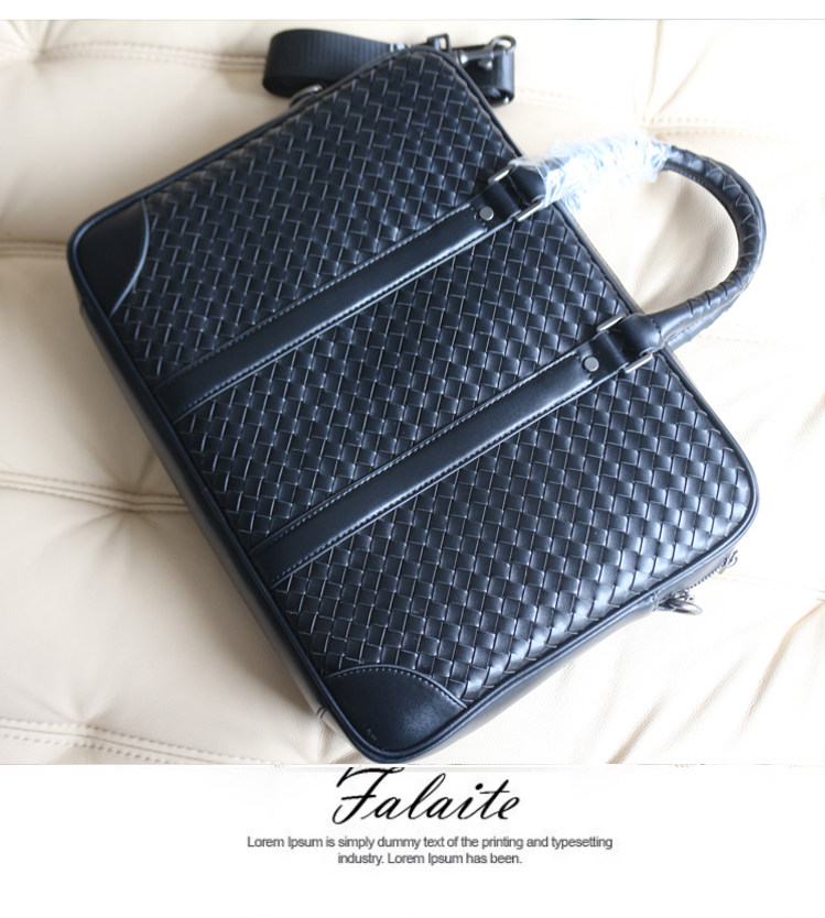 📚 编织羊皮男士手提包横款真皮商务男包大容量15寸电脑公文包包潮