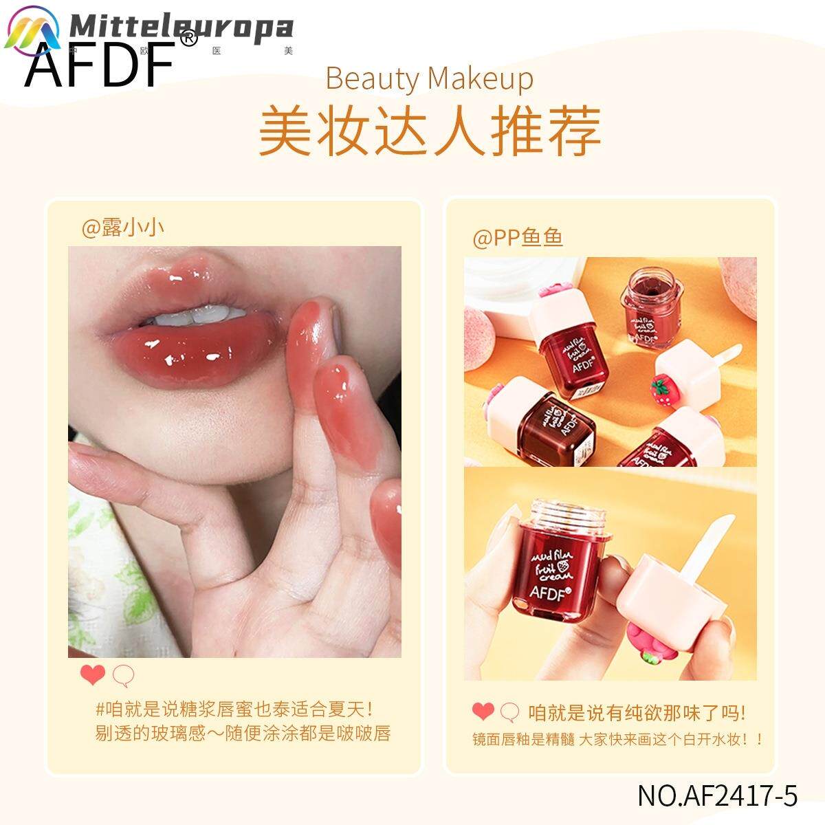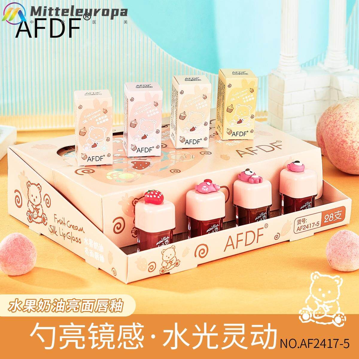 📚 AFDF水果奶油亮面唇釉套盒不拔干不沾杯不掉色嘟嘟唇少女学生唇蜜