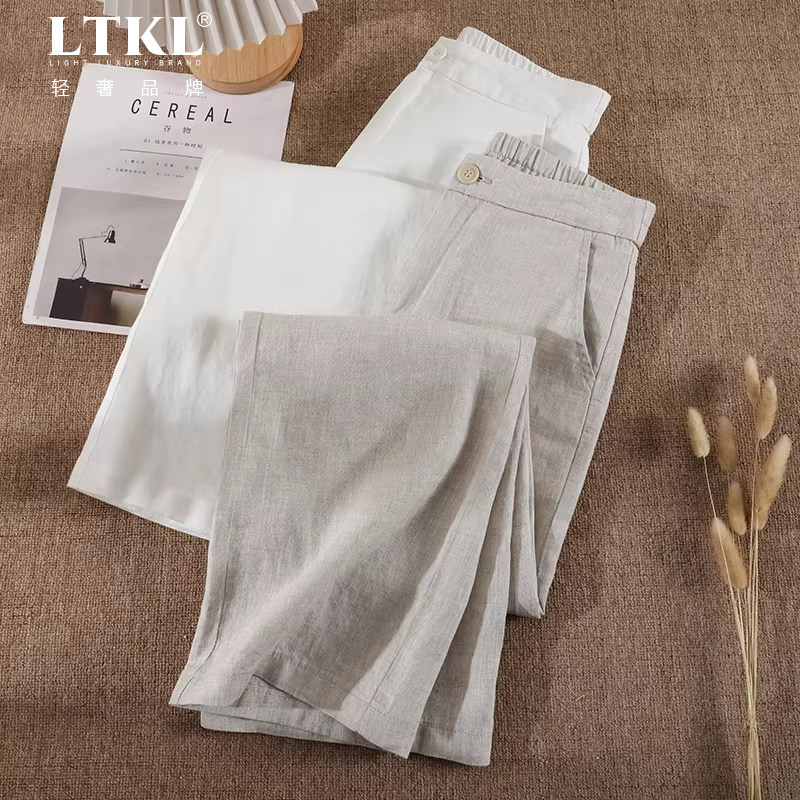 📚 纯亚麻宽松阔腿女裤2026夏季新款厚麻料垂感高腰九分显瘦休闲直筒