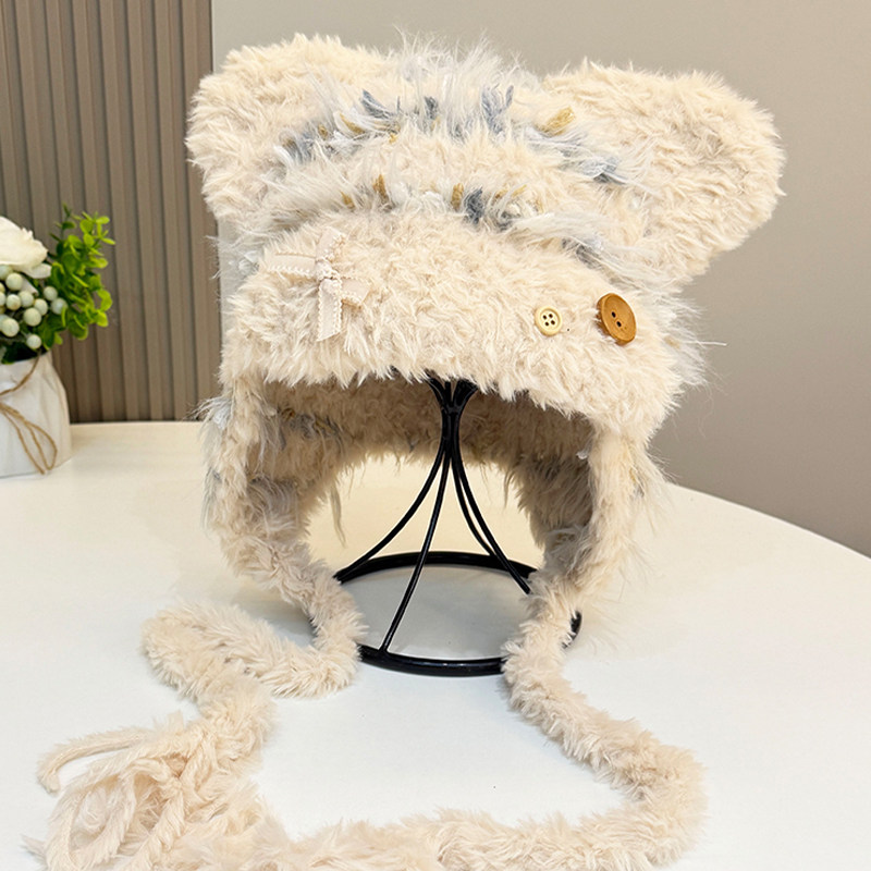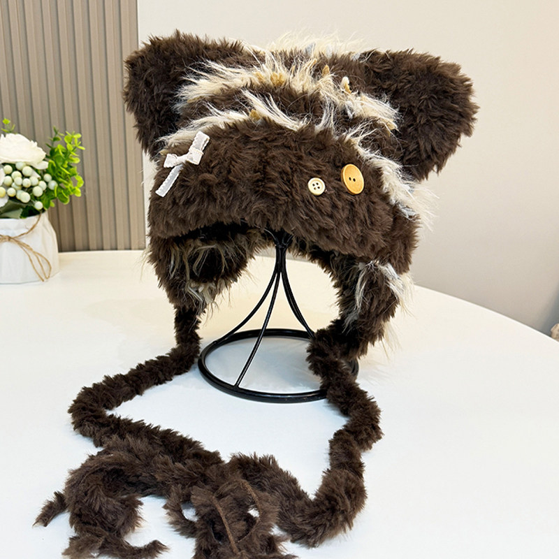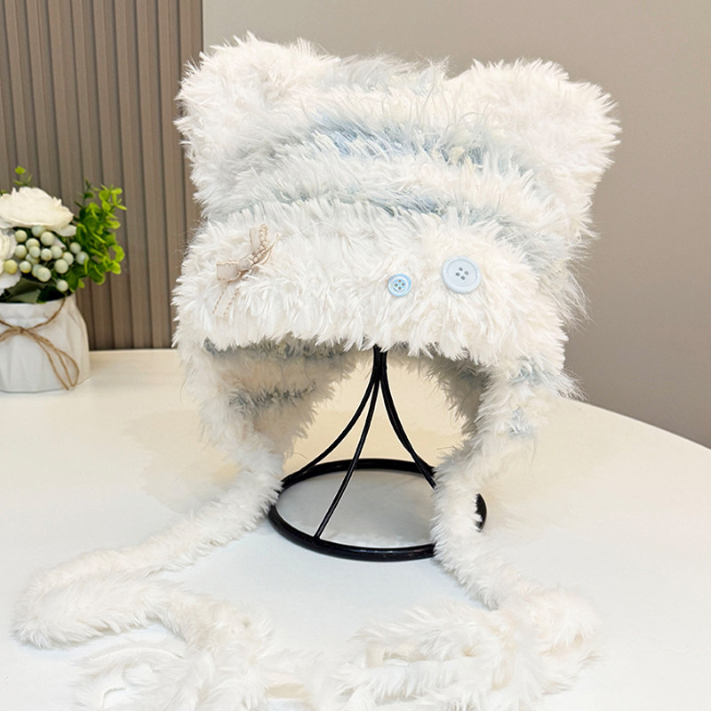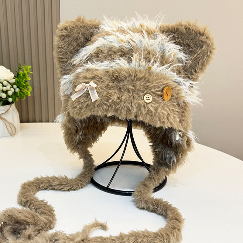 📚 可爱猫耳针织毛绒帽女秋冬季2025新款百搭显脸小防寒保暖护耳帽子
