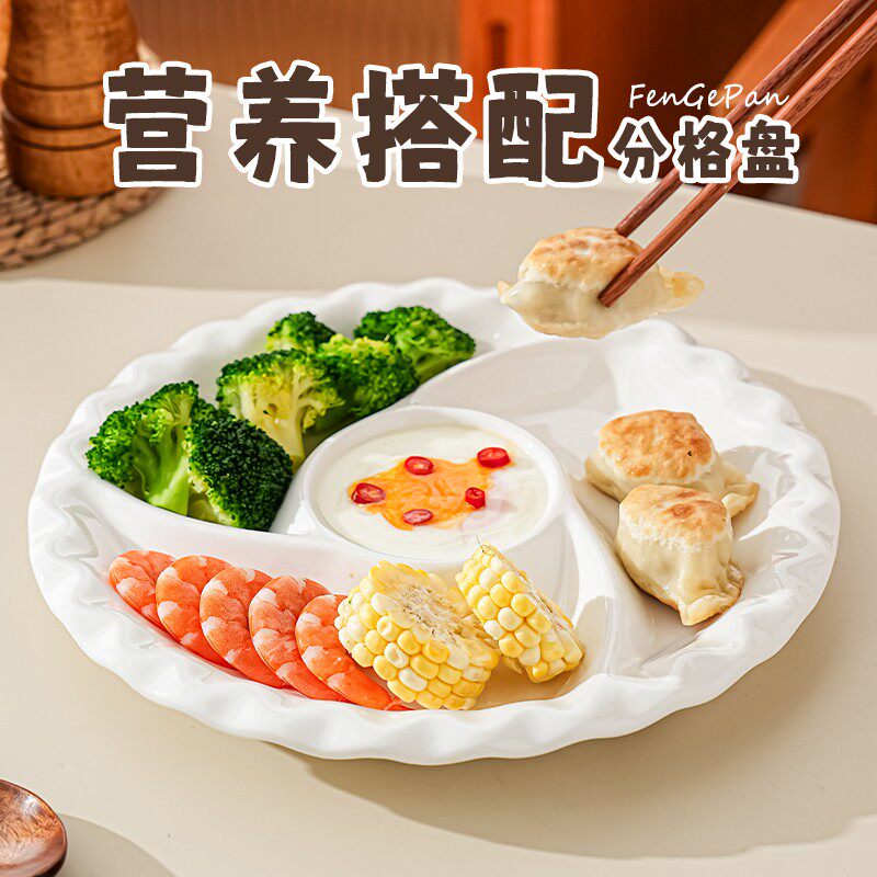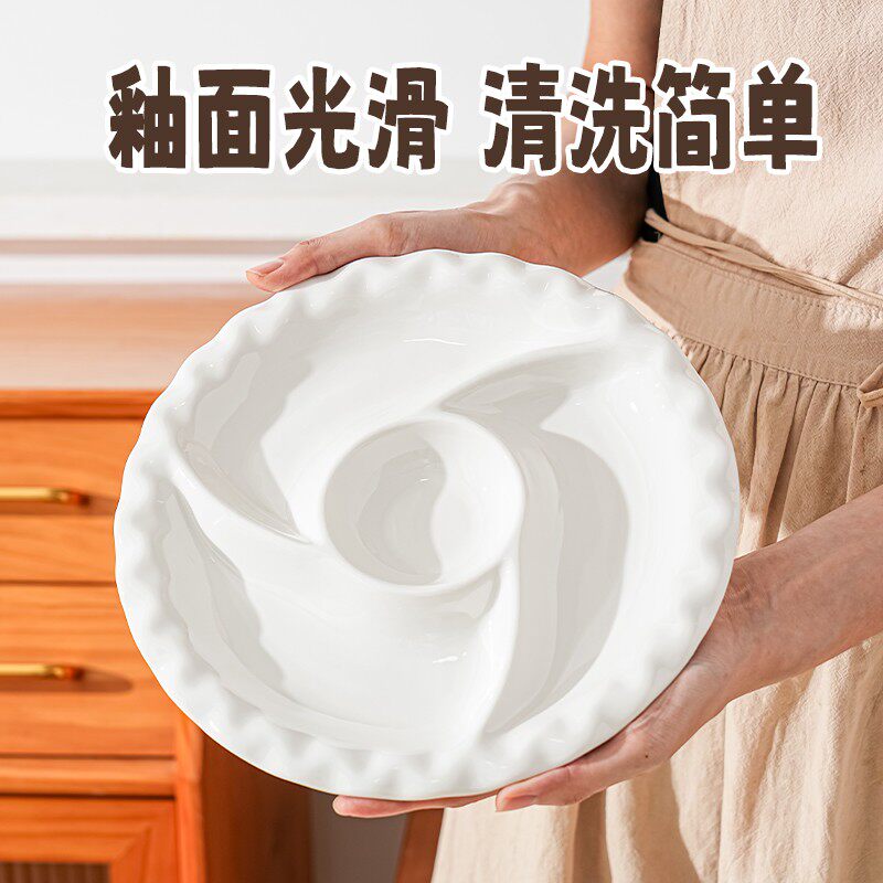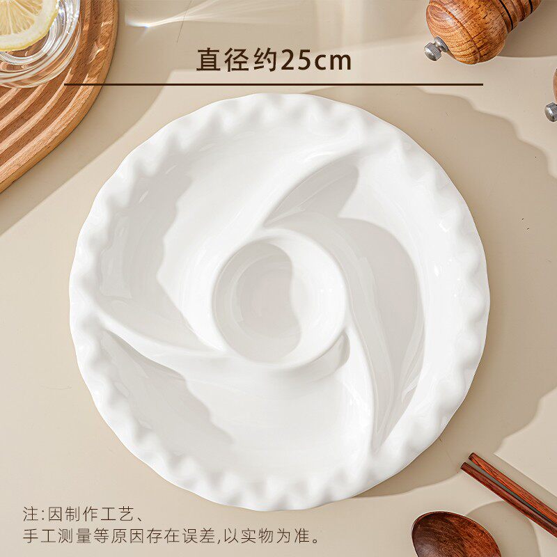 📚 吾可厨】风车盘分格盘子陶瓷水果卤味盘白色餐具蒸菜饺子减脂餐盘