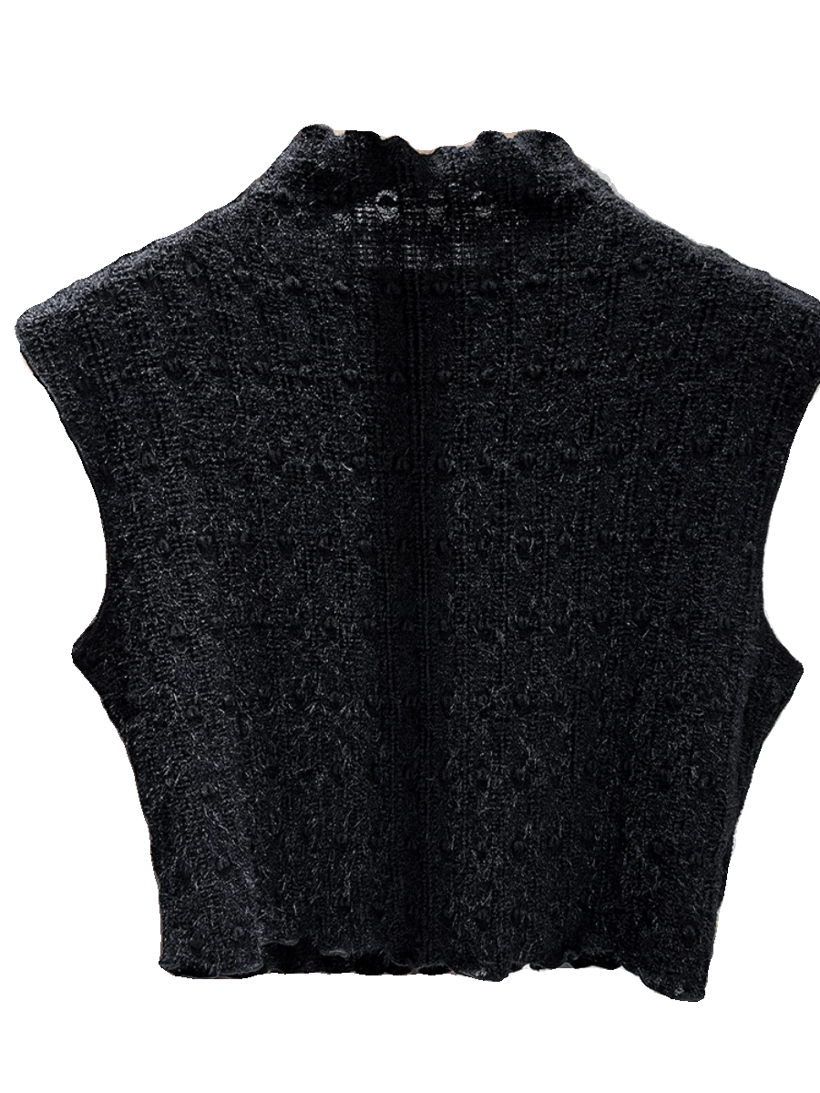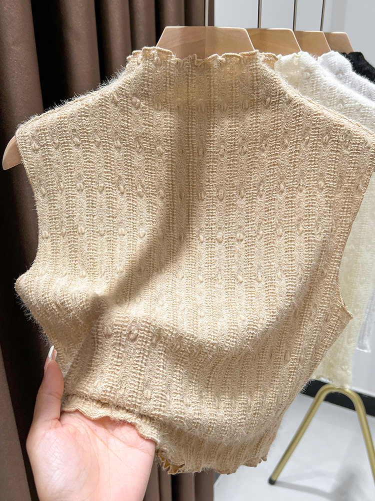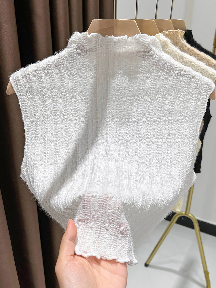 📚 短款假领子半高领木耳边蕾丝背心女内搭秋冬软糯磨毛无袖打底衫