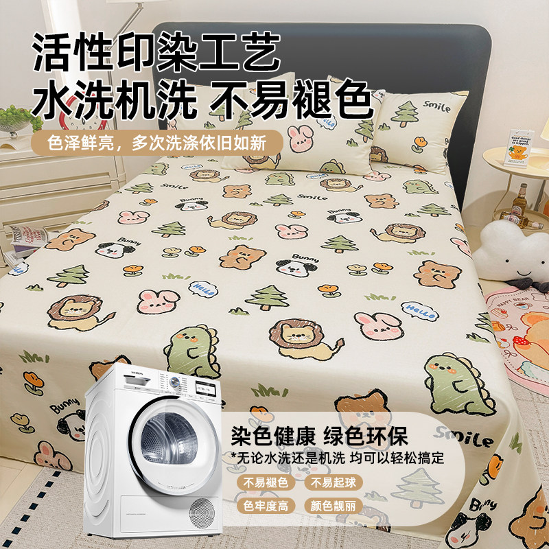 📚 ins全棉卡通床单单件新疆全棉加厚床上三件套学生宿舍四季通用款