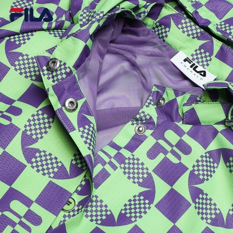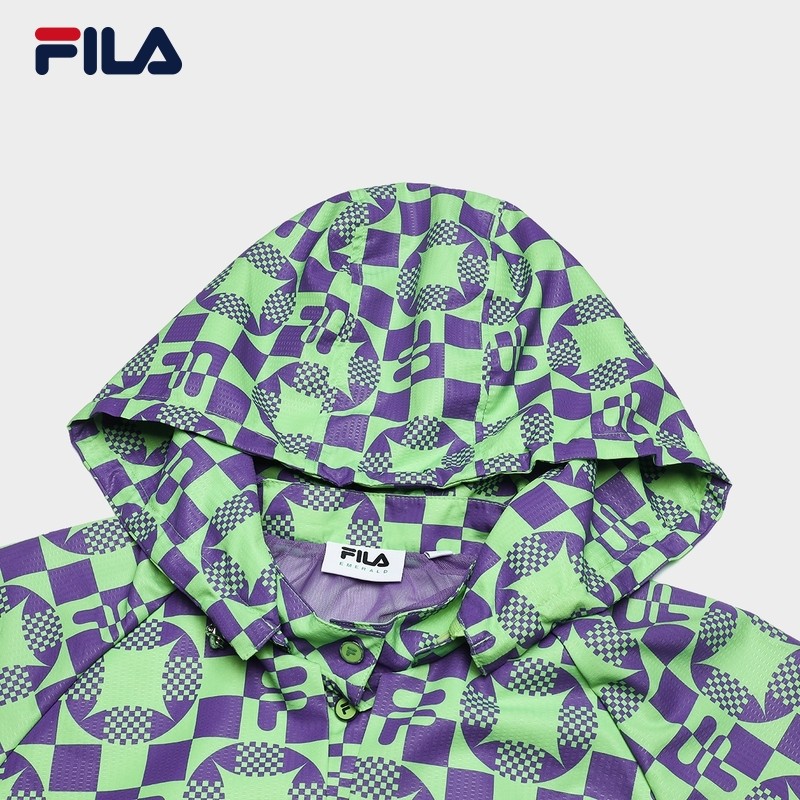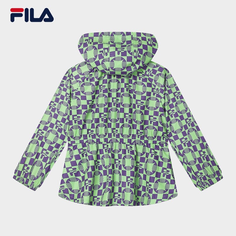 📚 FILA Emerald斐乐女士女装外套2024秋新款满印中长款收腰连帽上衣