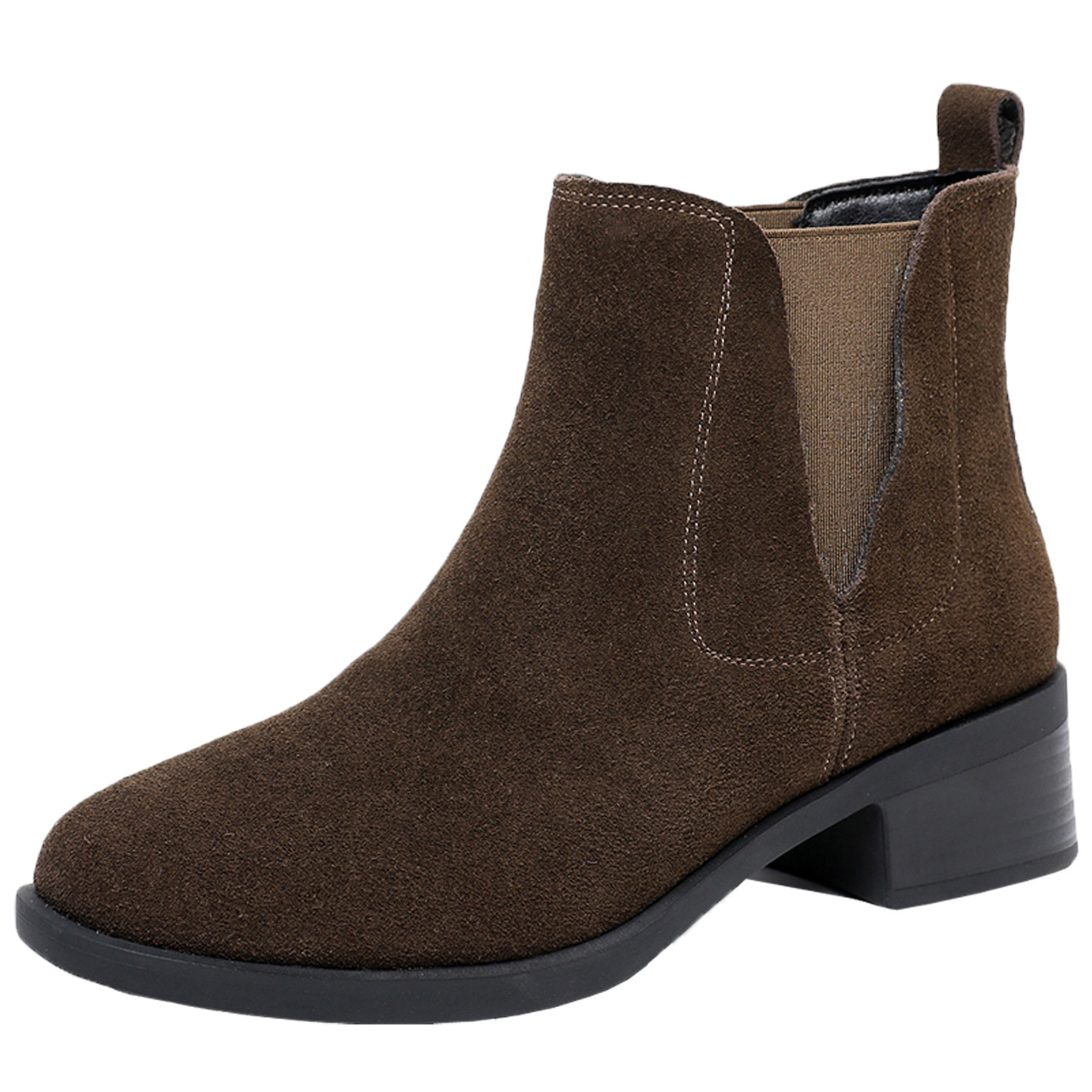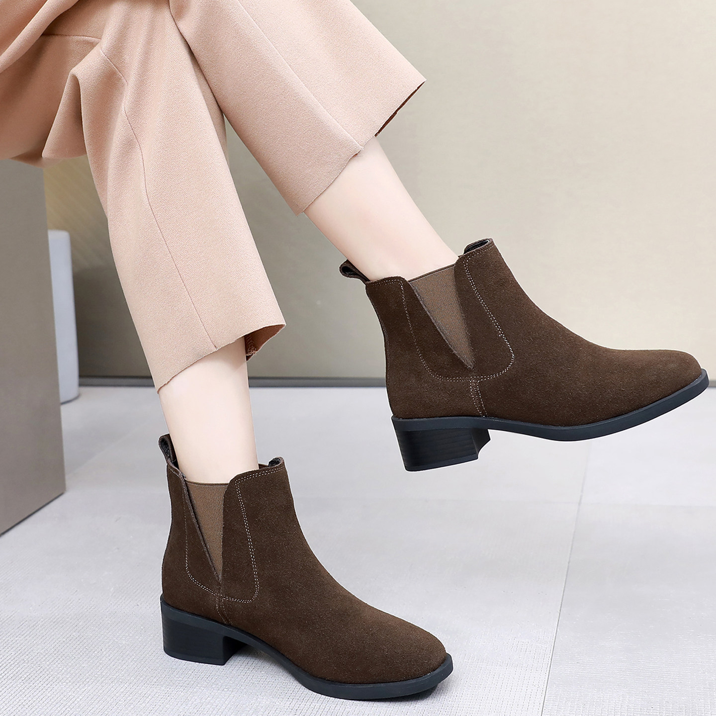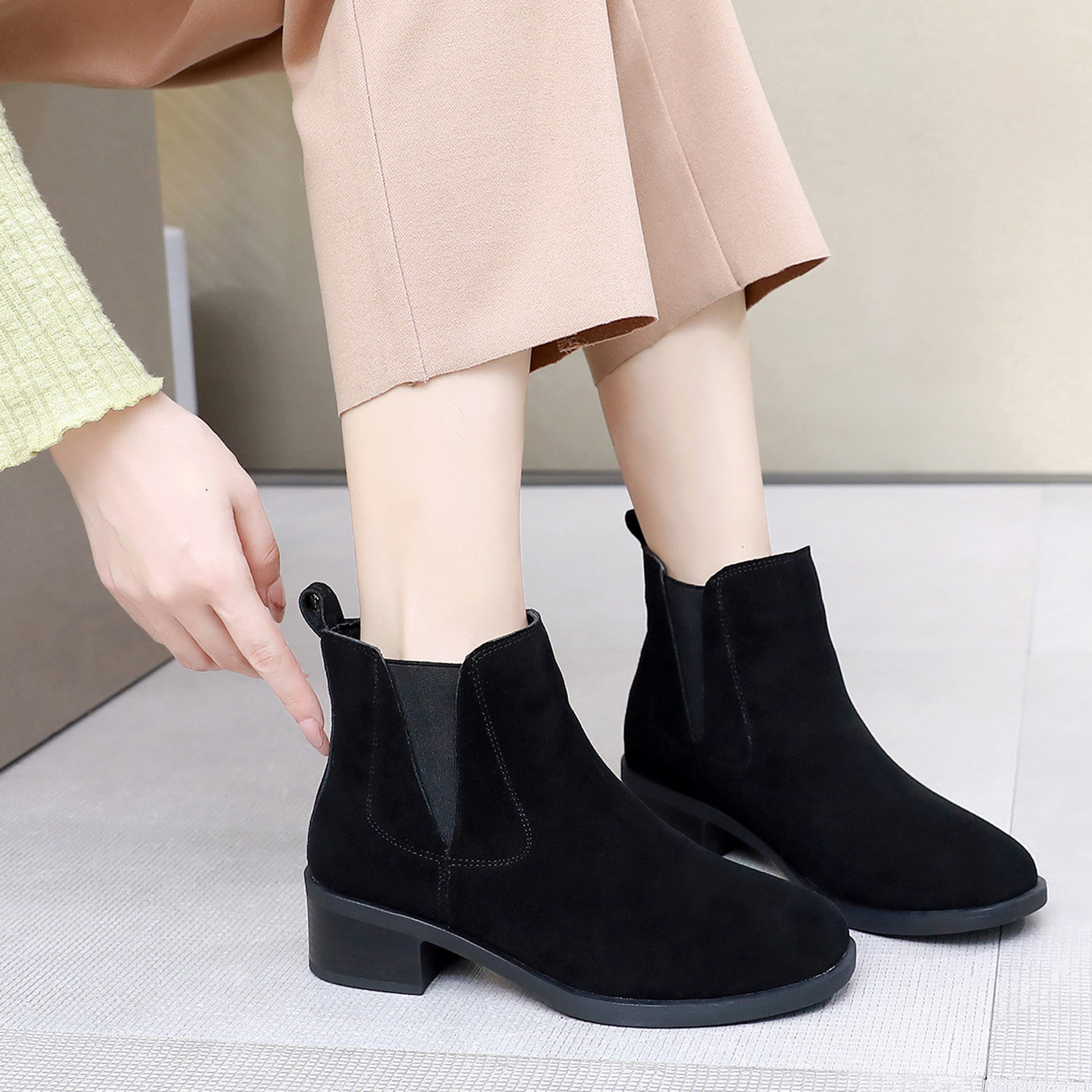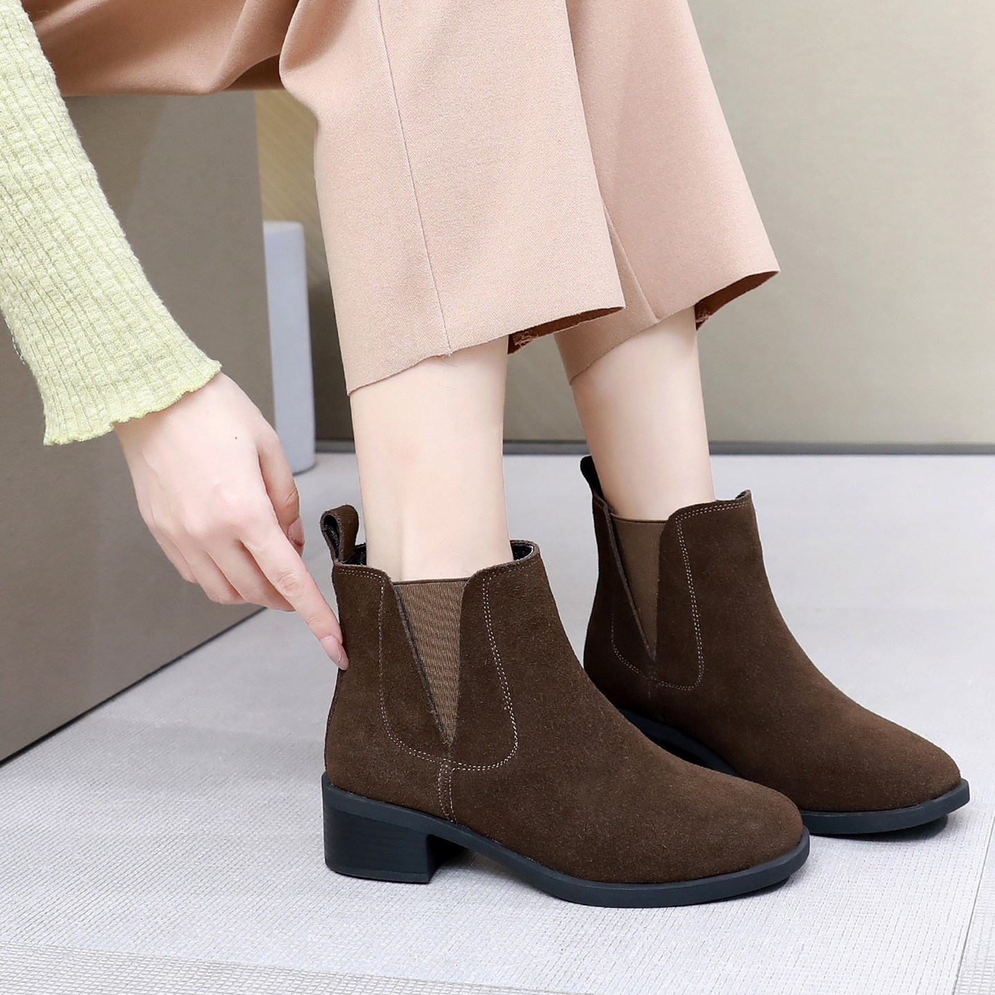 📚 真皮靴子女切尔西靴磨砂真皮短靴粗跟软底马丁靴春秋单靴加绒女靴