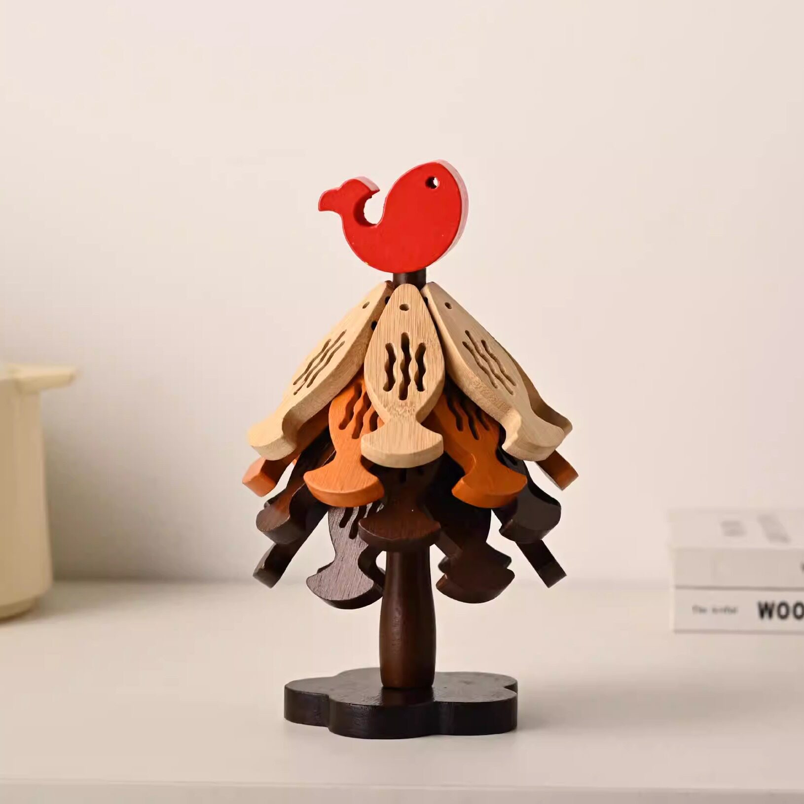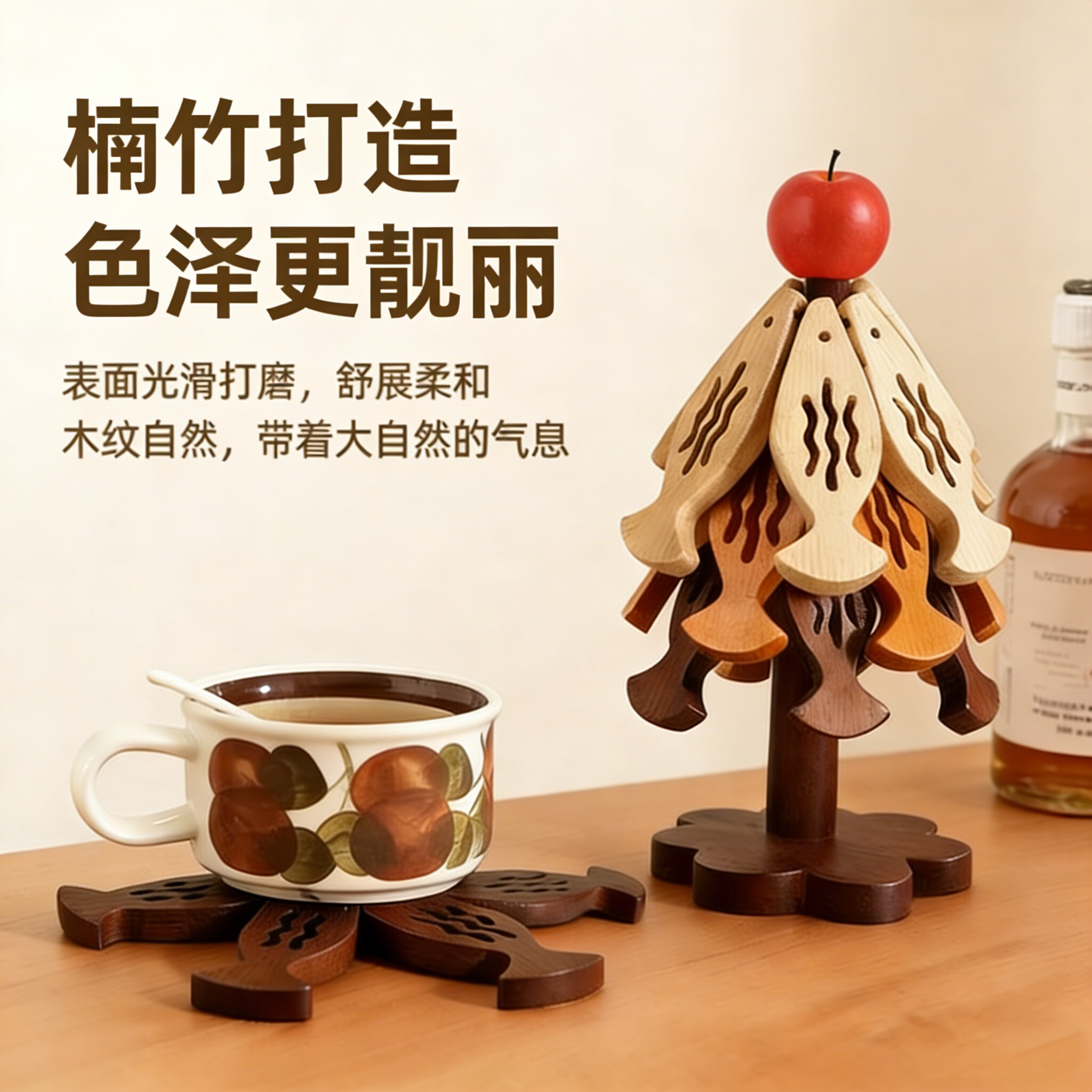 📚 年年有余杯垫餐桌垫小鱼创意摆件竹制耐高温圣诞树防烫家用隔热垫