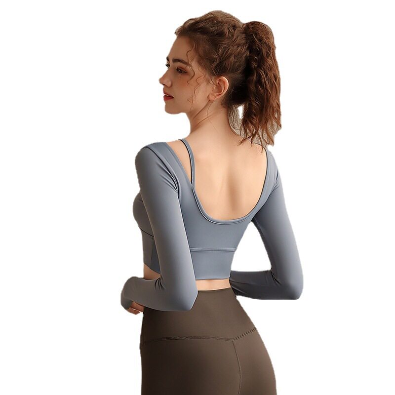 📚 2025洛神瑜伽服中意长袖女带胸垫秋冬健身服时尚运动上衣瑜伽跑步