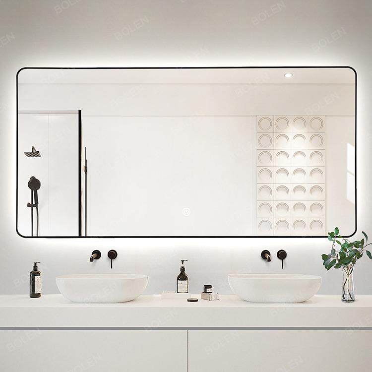 📚 BOLEN圆角铝合金边框壁挂式智能浴室镜洗手间酒店卫生间led灯镜子