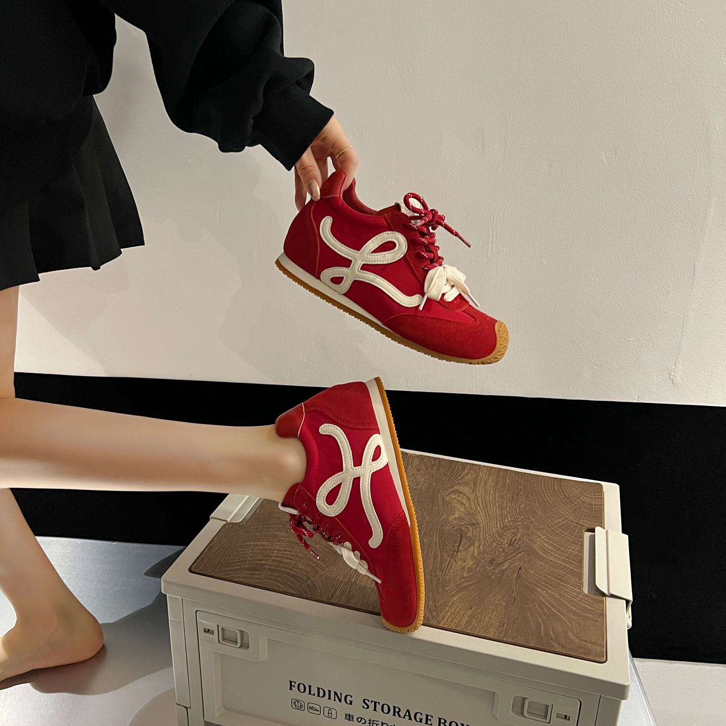 📚 真皮厚底内增高德训鞋女春2026新款爆款红色百搭休闲运动阿甘鞋子