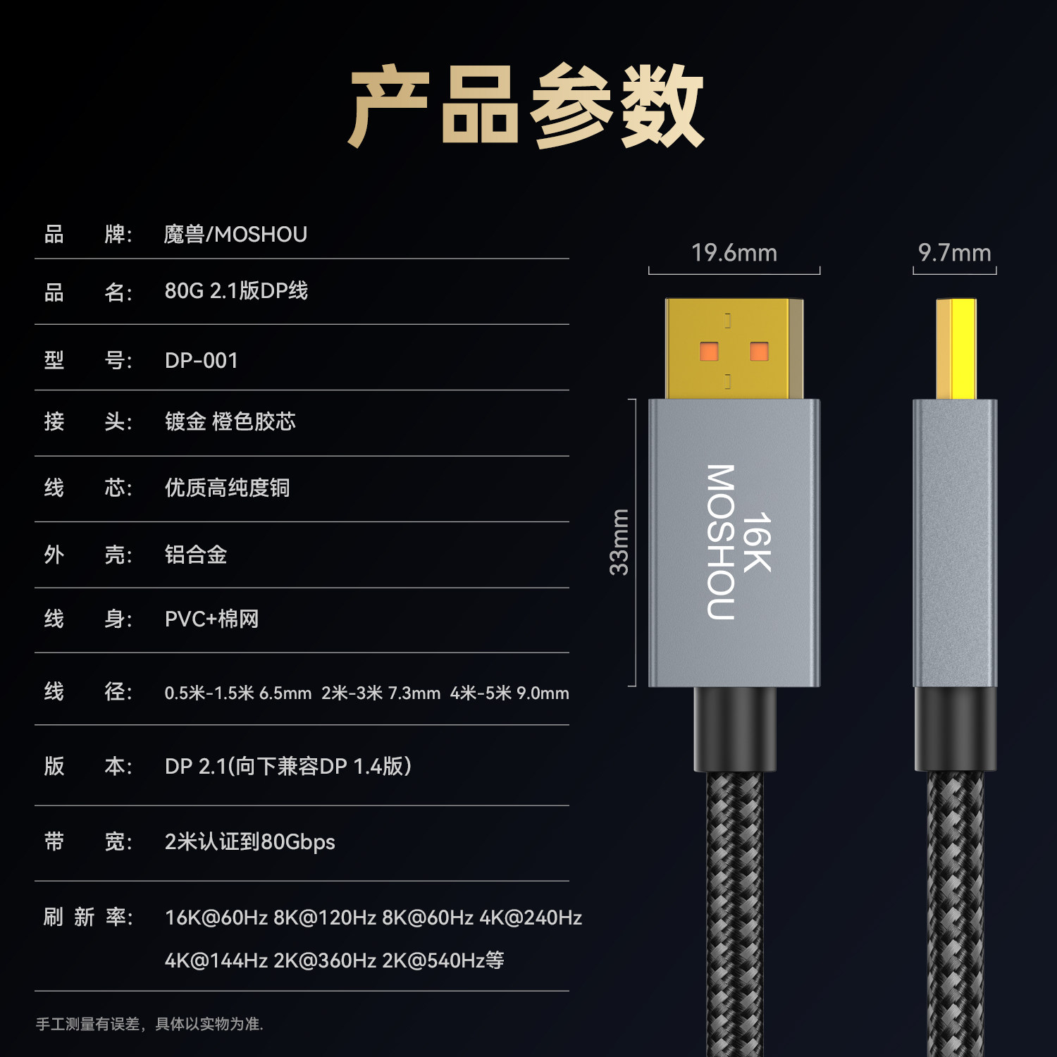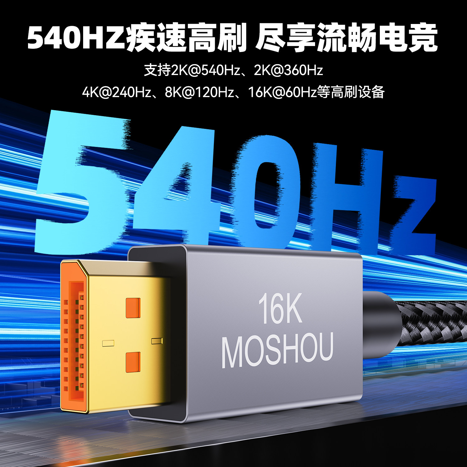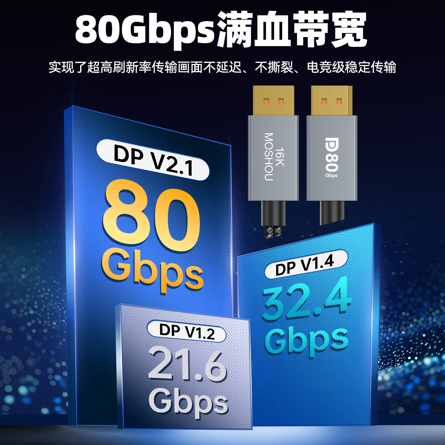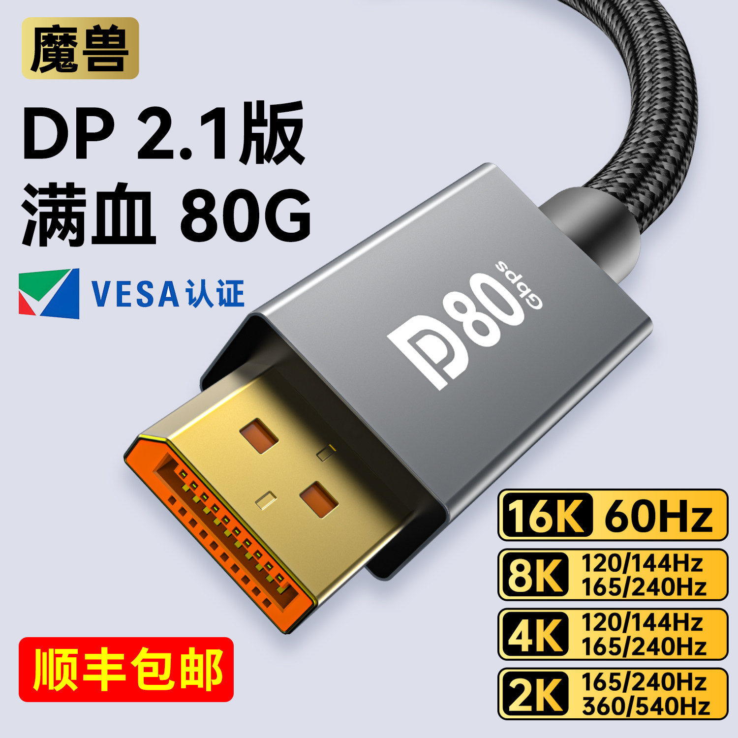 📚 魔兽认证款DP线2.1版80G 8K@120Hz 4K@240Hz电脑显示器高清视频线