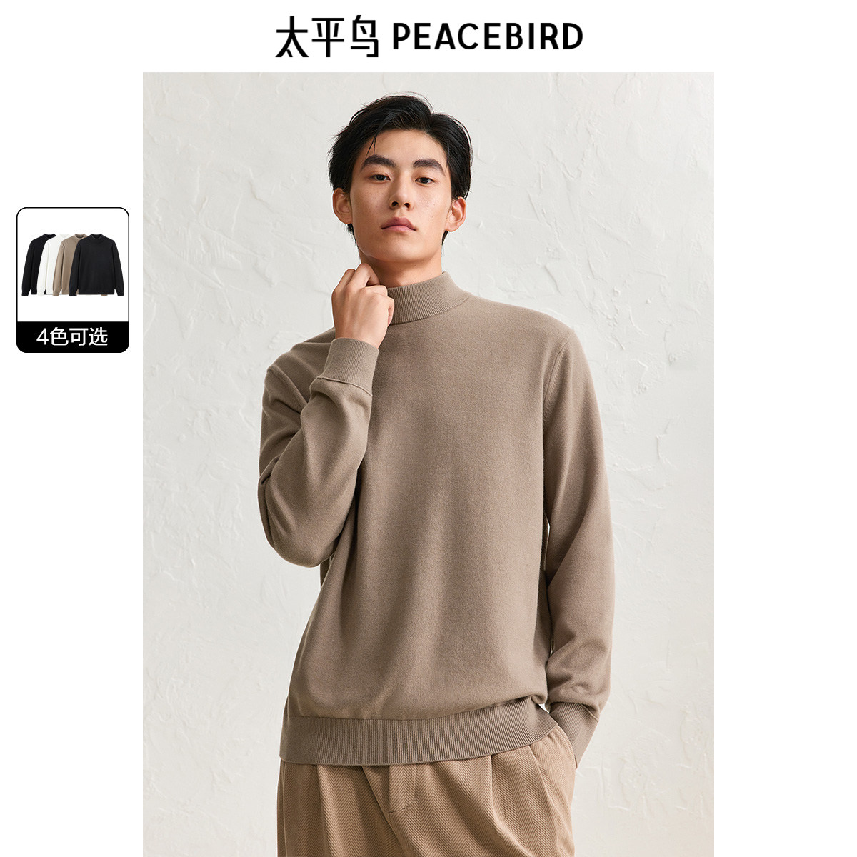 📚 太平鸟男装秋冬新品毛衣净色半高领亲肤绒打底衫保暖针织衫