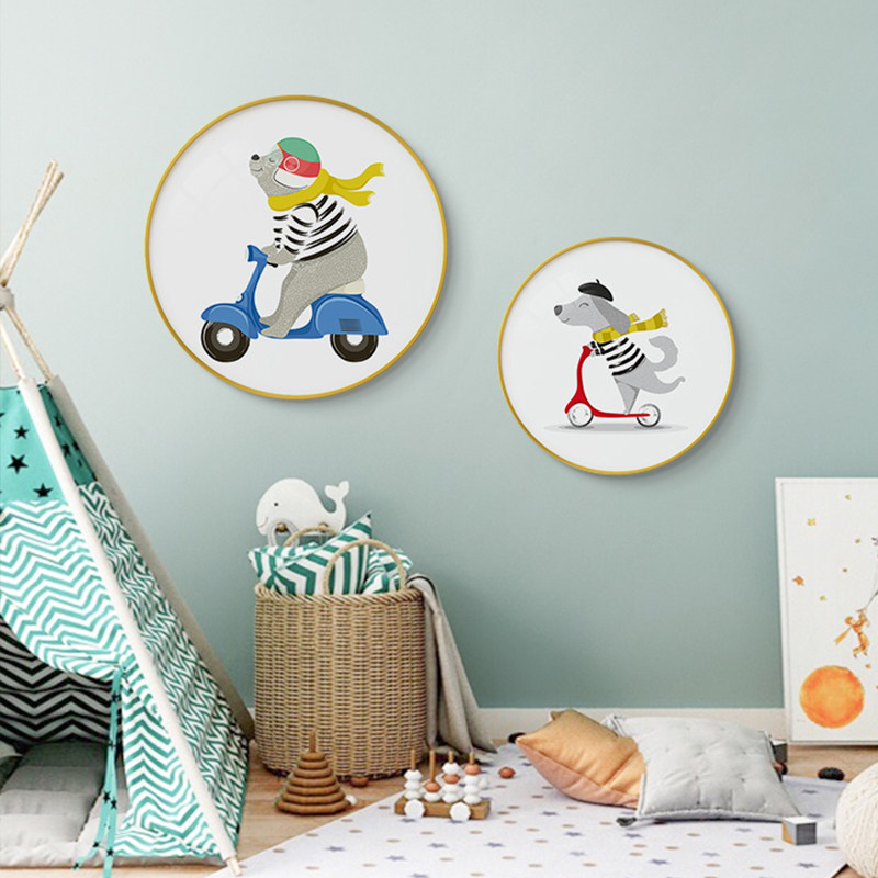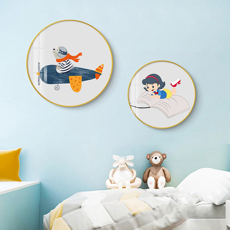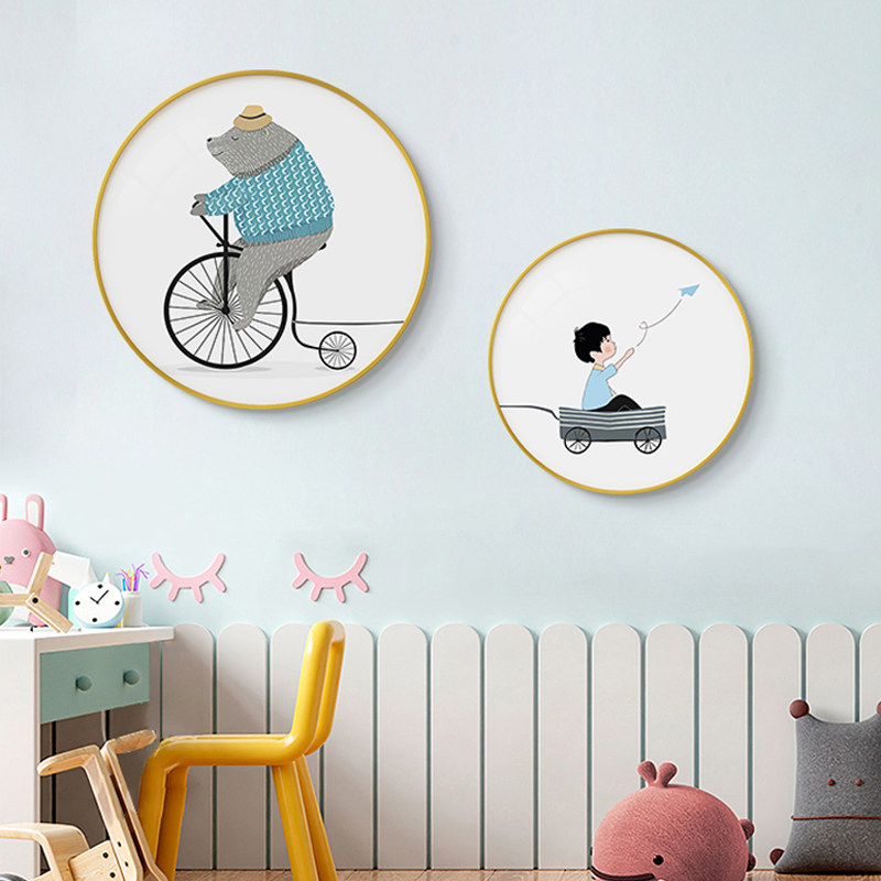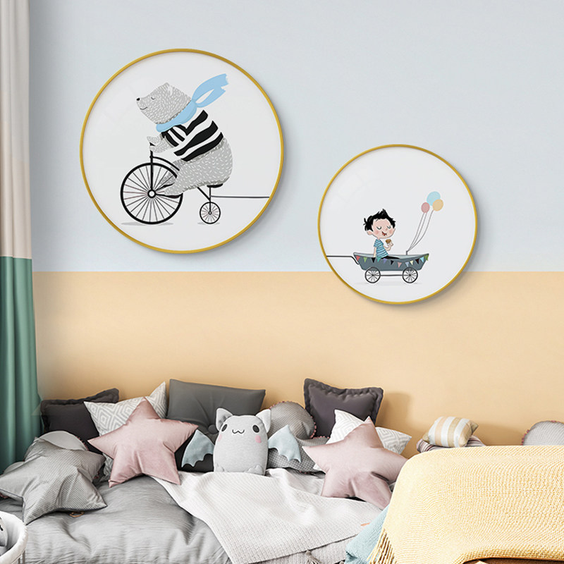 📚 现代简约儿童房装饰画男孩房间背景墙壁画圆形卡通卧室画床头挂画