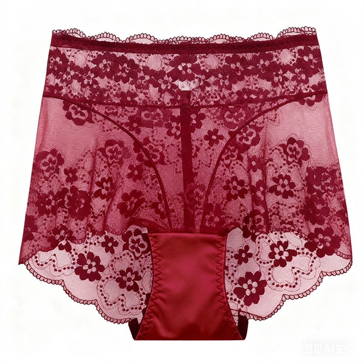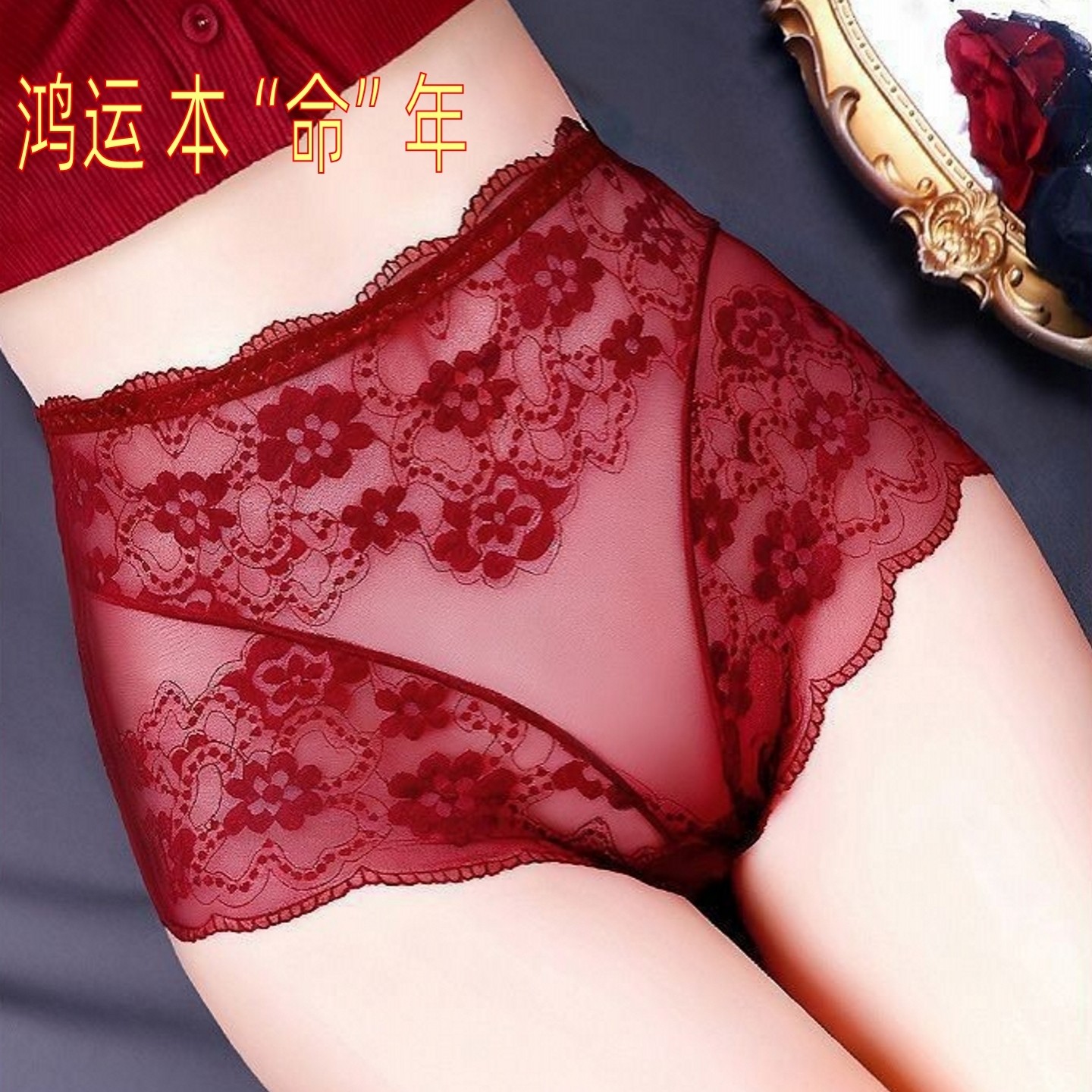 📚 内裤女士轻奢蕾丝锦纶纯棉裆高腰收腹本命年大红鸿运半透性感三角