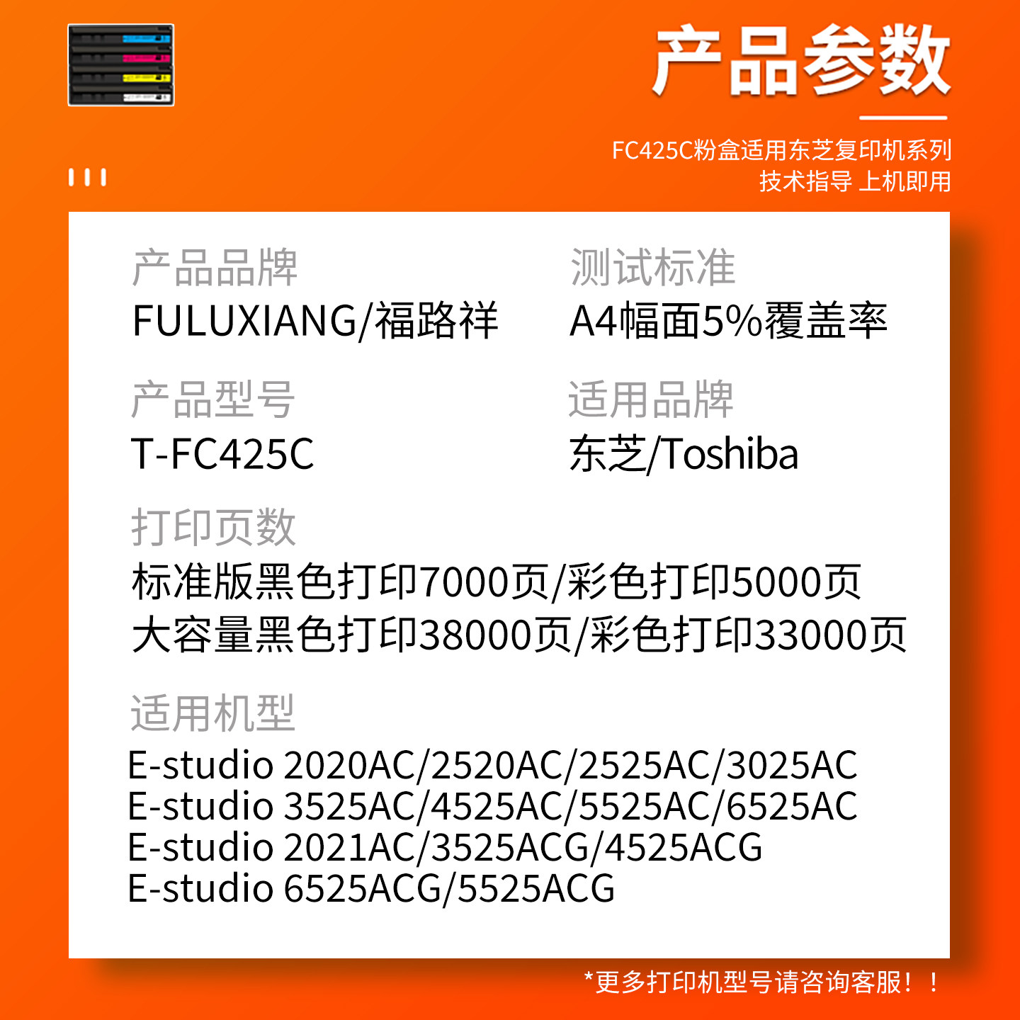 📚 适用东芝6525ACG粉盒T-FC425C粉盒e-Studio 5525ACG碳粉盒e-Studi 4525ACG 3525ACG彩色打印机复印机墨盒粉筒