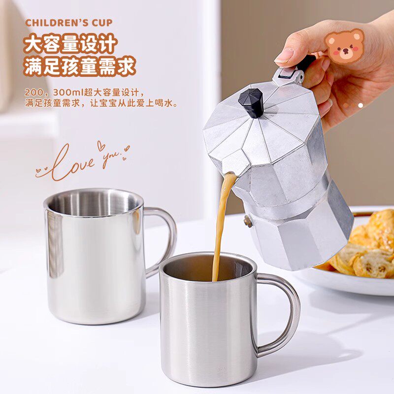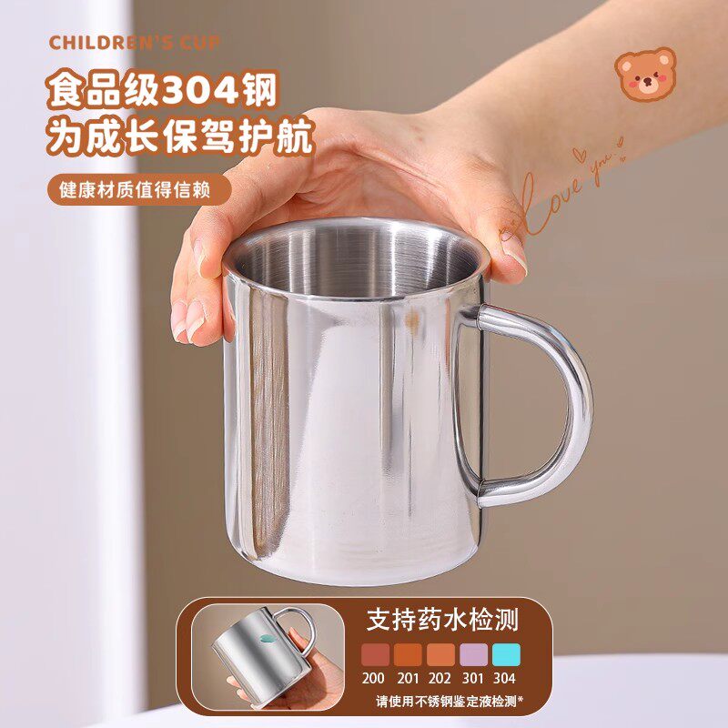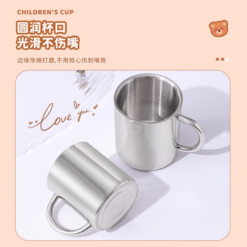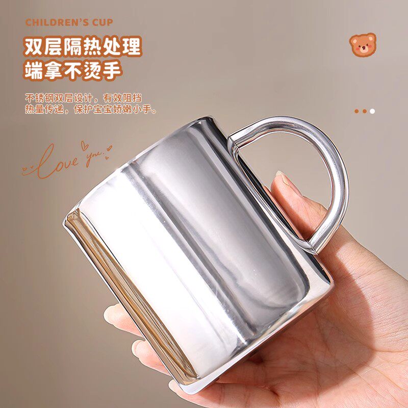 📚 不锈钢杯子食品级口杯幼儿园儿童水杯双层隔热防烫茶杯带盖铁杯子
