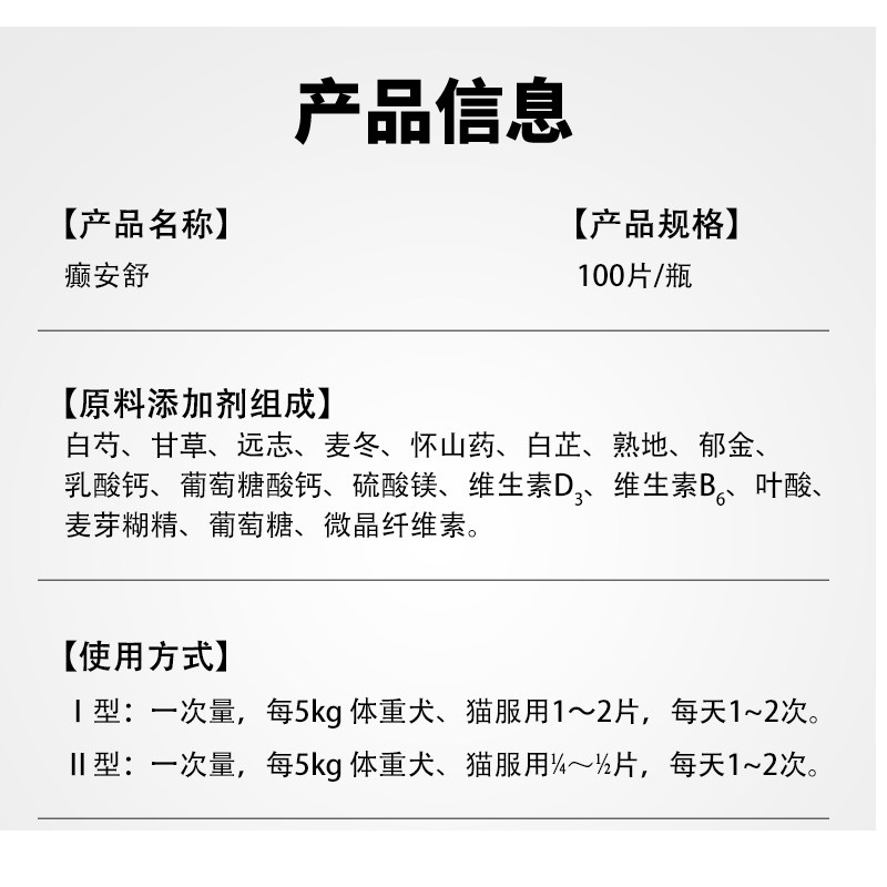 📚 宠物犬猫正品癫安舒营养片狗猫神经脑保健养护100粒片防伪可查