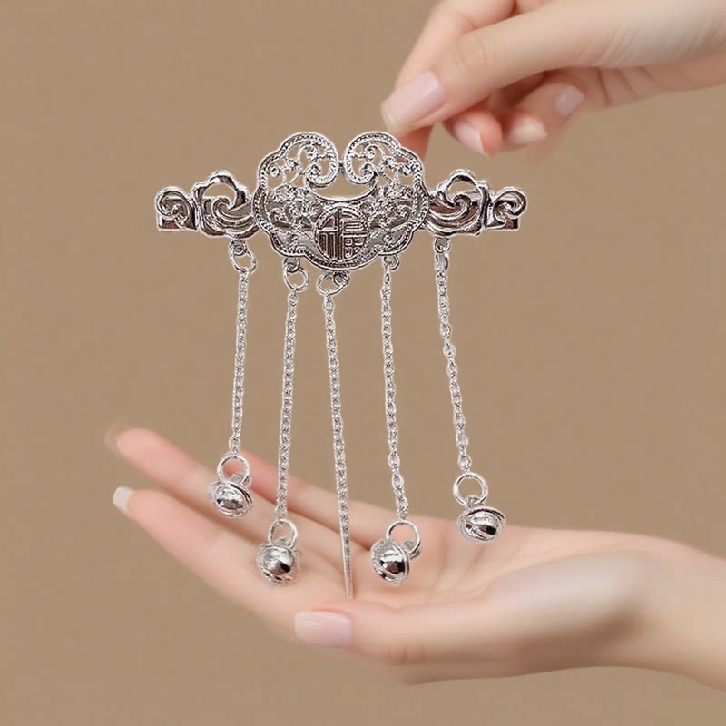 📚 古风平安锁铃铛发夹新中式高级感发卡侧边夹卡子头饰发饰