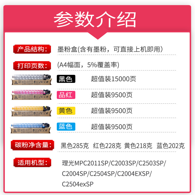📚 适用理光MP C2503粉盒Ricoh C2504碳粉2011exSP 打印机墨盒2003 3004 3504 2004 4504 6004四色墨粉原装品质