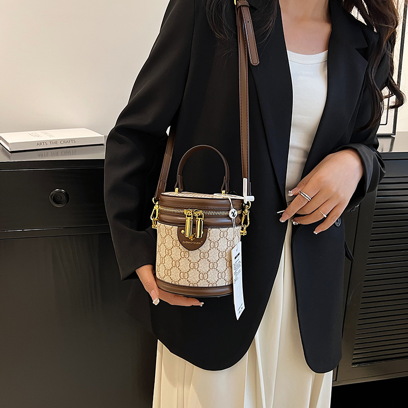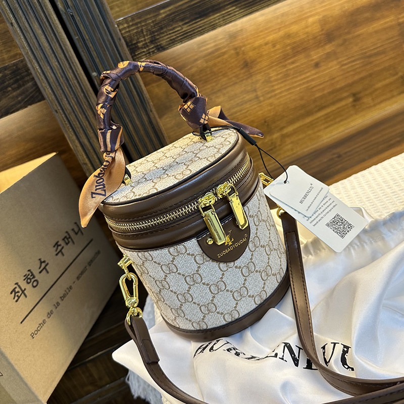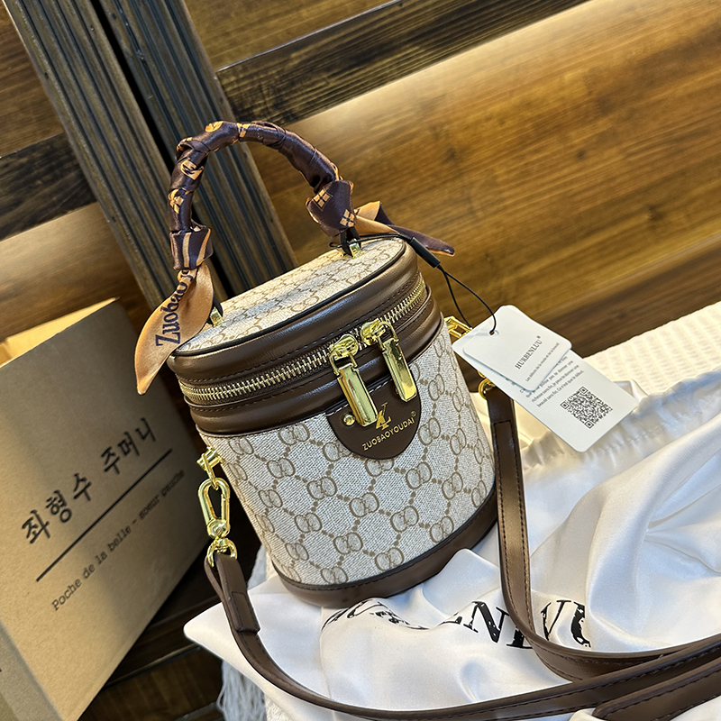 📚 左嫂家 原创老花圆筒包女斜挎2025新款潮洋气质感百搭水桶单肩包
