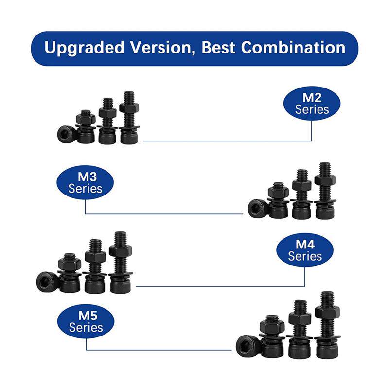 📚 2000pcs圆柱头内六角螺钉配弹垫平垫套装M2/M3/M4/M5高强度12.9级