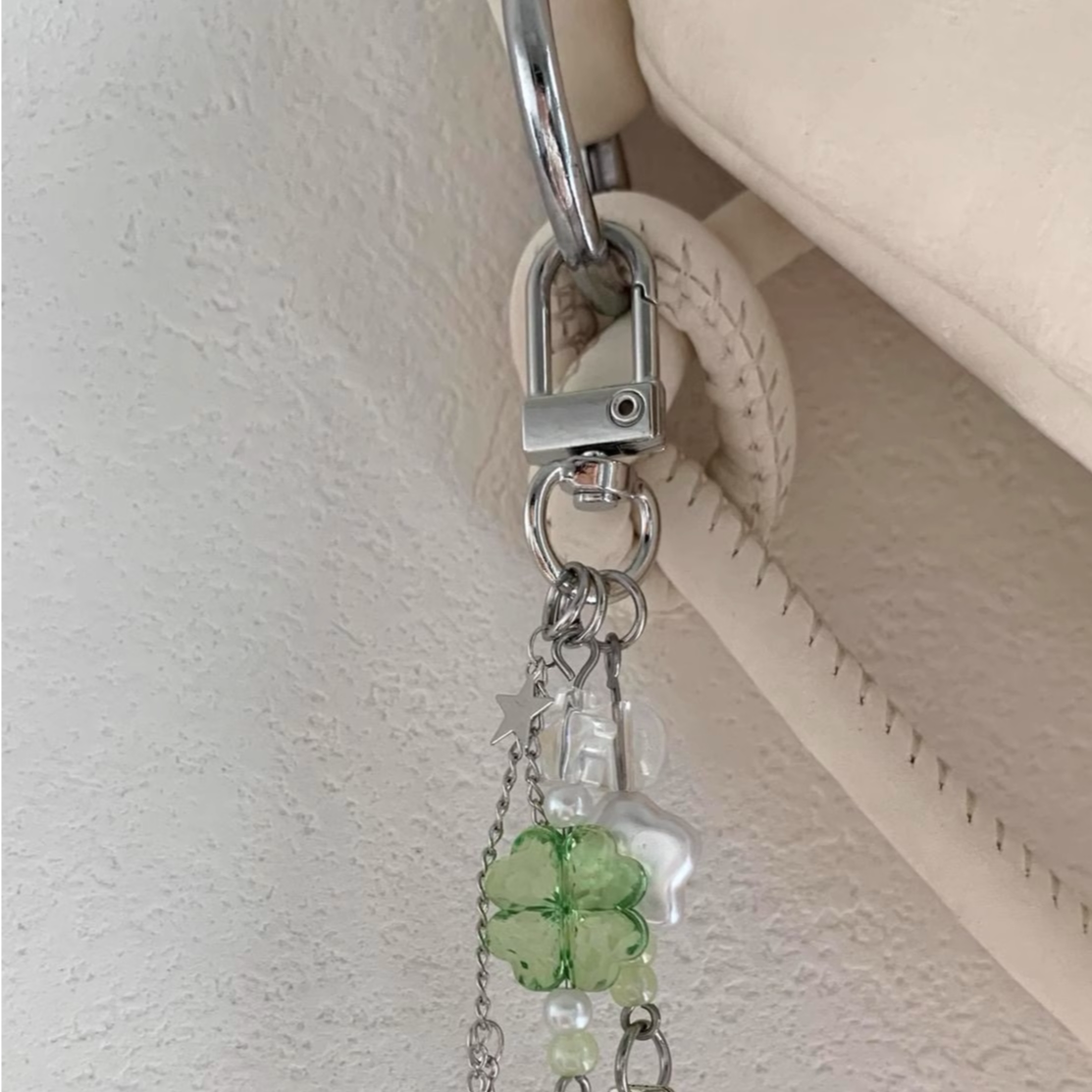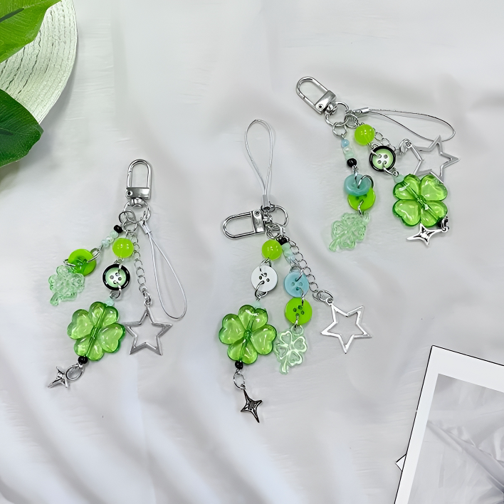 📚 ins风幸运四叶草手工绿色手机链ccd相机挂件包包挂饰钥匙扣链条女
