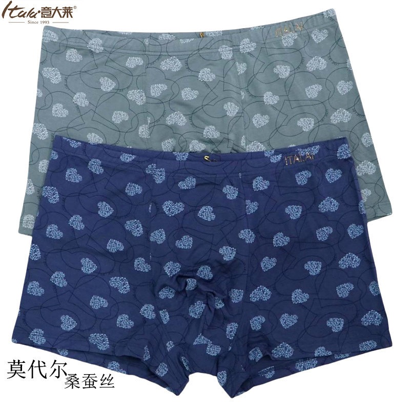 2条 新款意大莱莫代尔男士桑蚕丝内裤平角抗菌四角短裤头青年4683