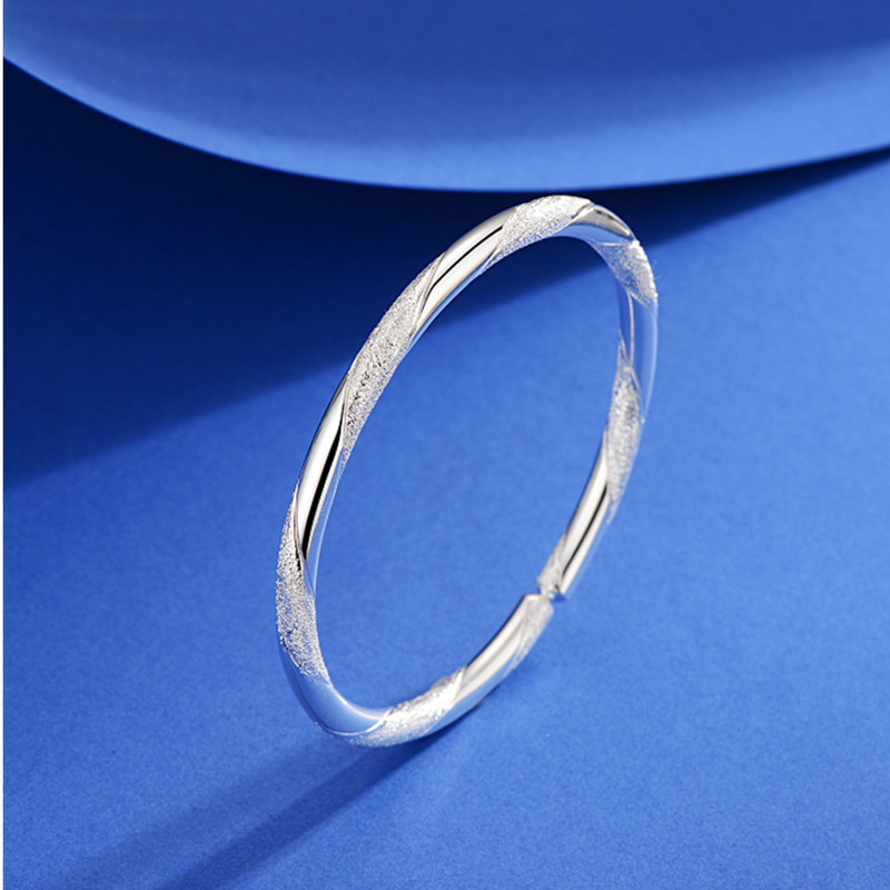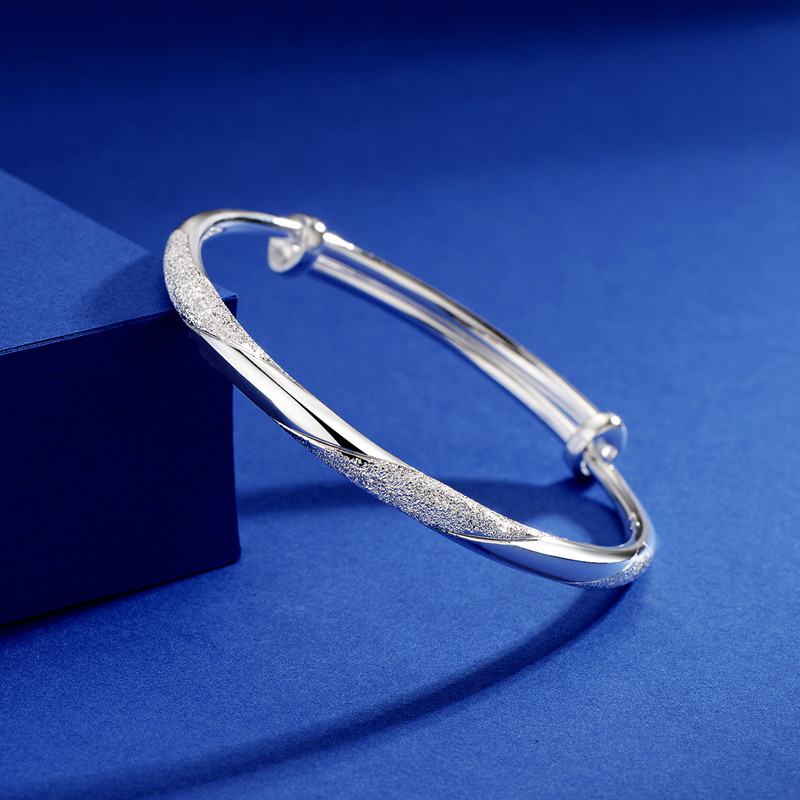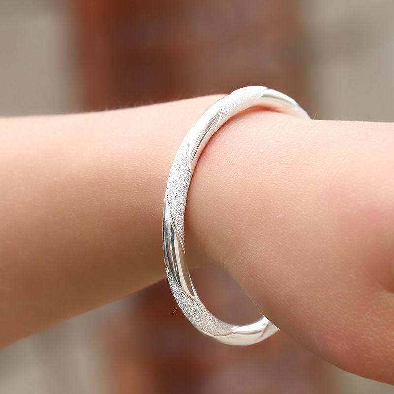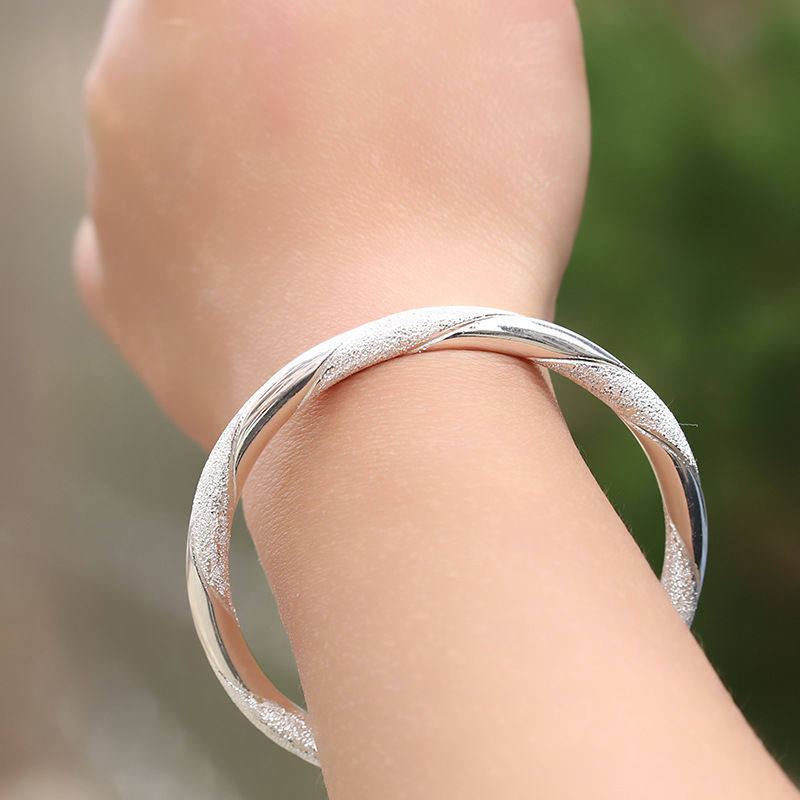 📚 时尚爱交织手镯女纯银新款s9999足银镯子520情人七夕节礼物送女友