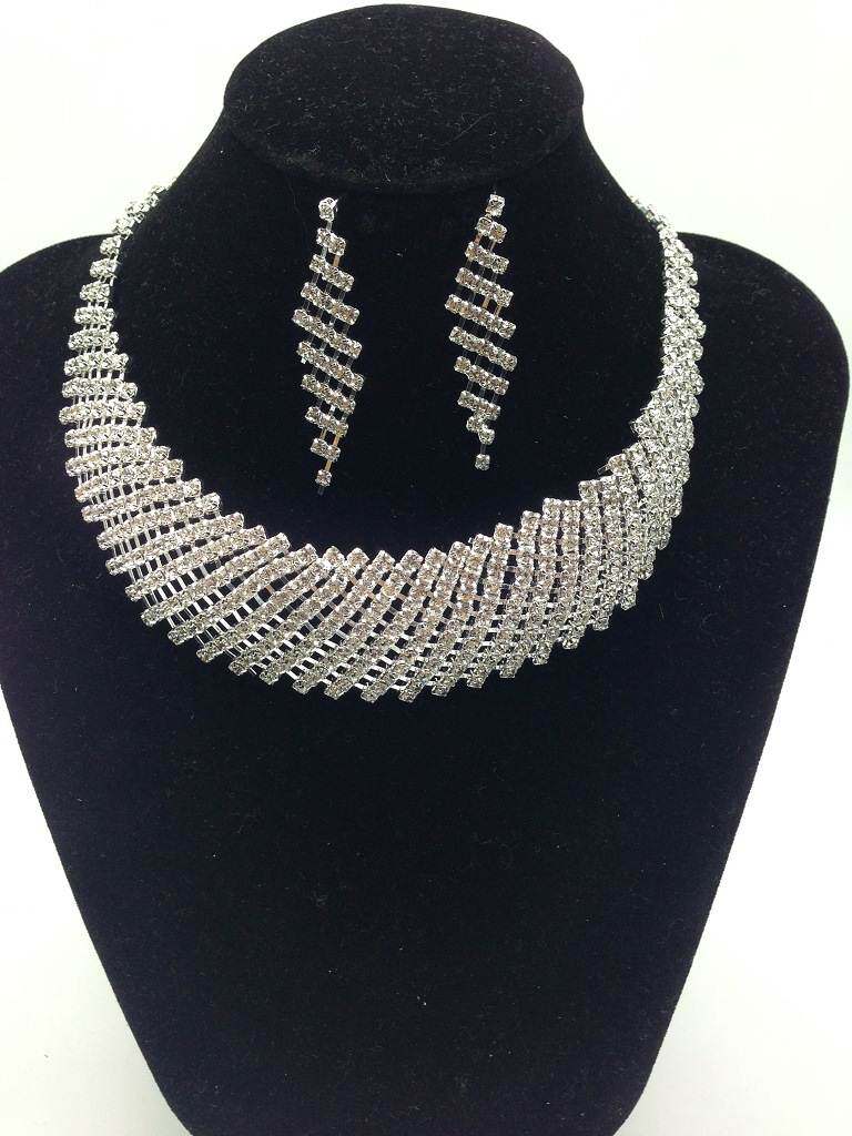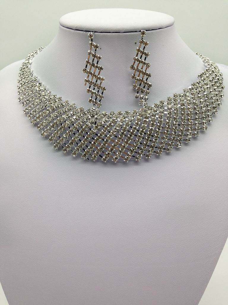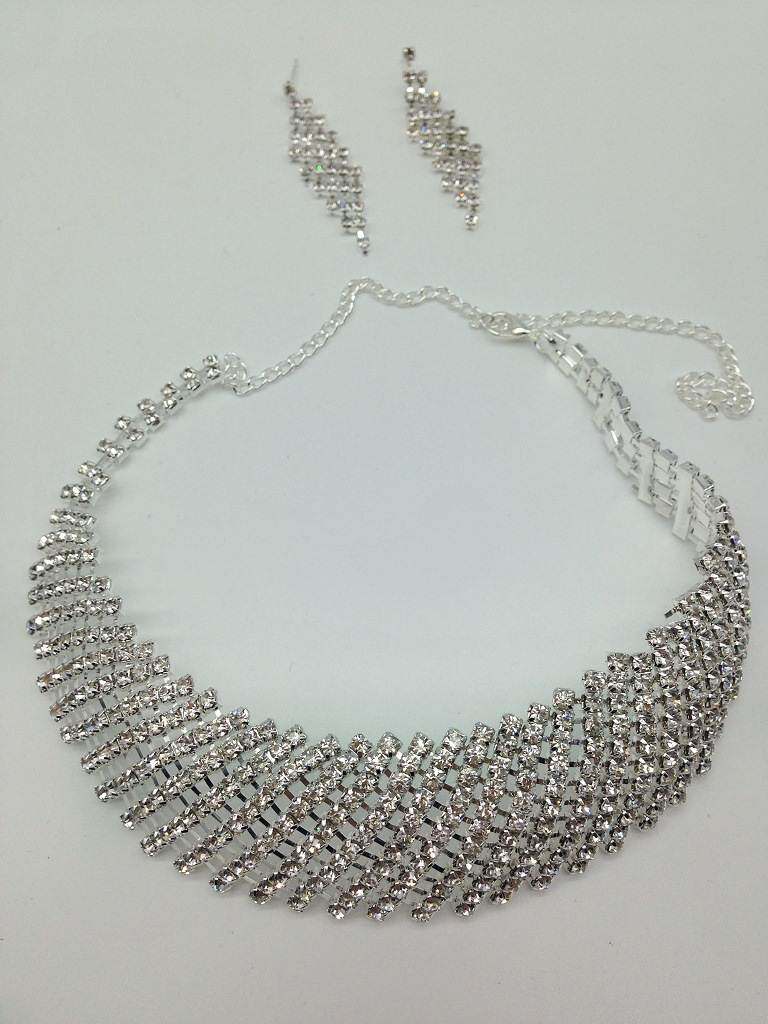 📚 欧美新娘项链满钻银颈链套链 bride necklace set jewelry