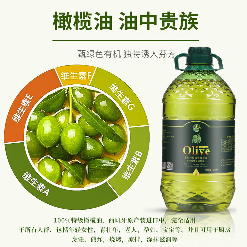 📚 橄榄油5斤装特级初榨非转基因家用炒菜食用植物调和油5升烹饪粮油