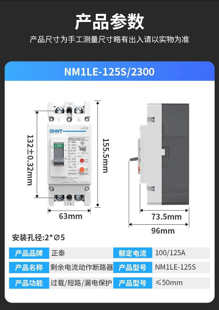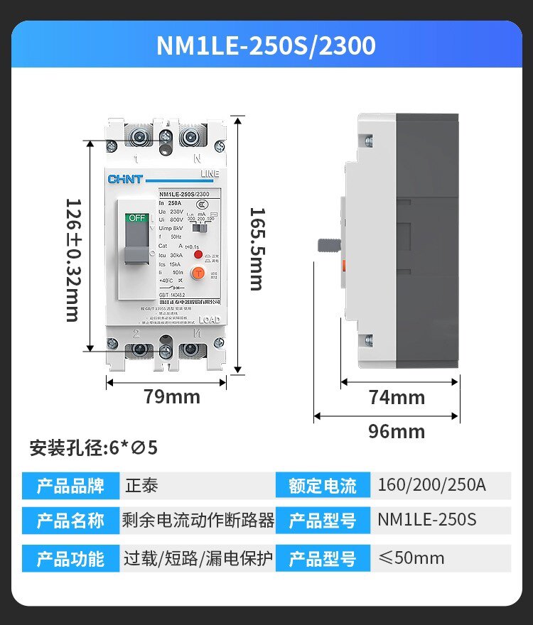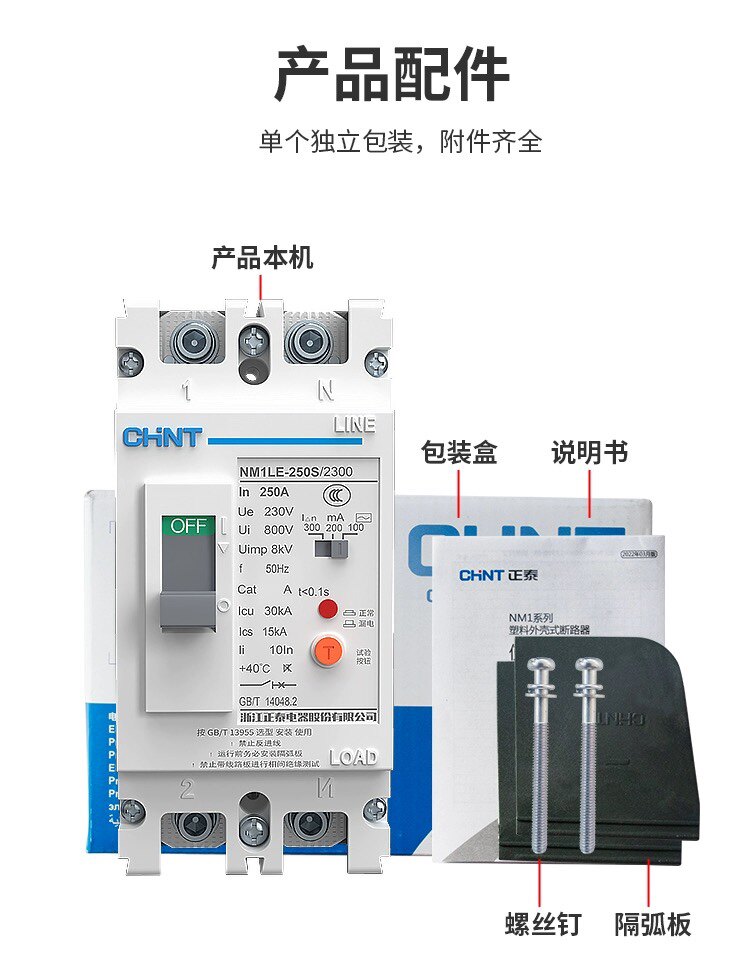 📚 正泰单相塑壳漏电开关断路器NM1LE-2300大功率2p漏保125A160A250A