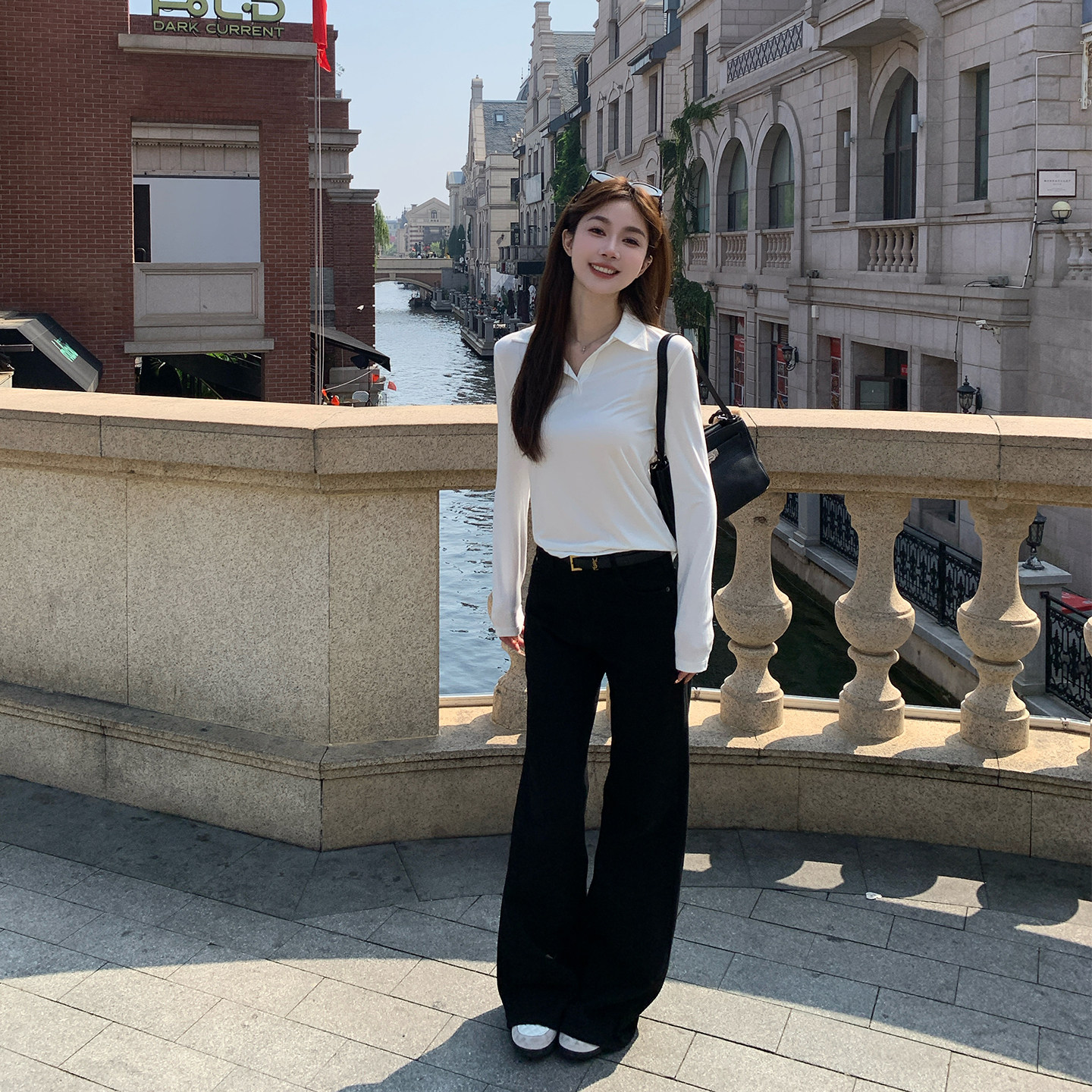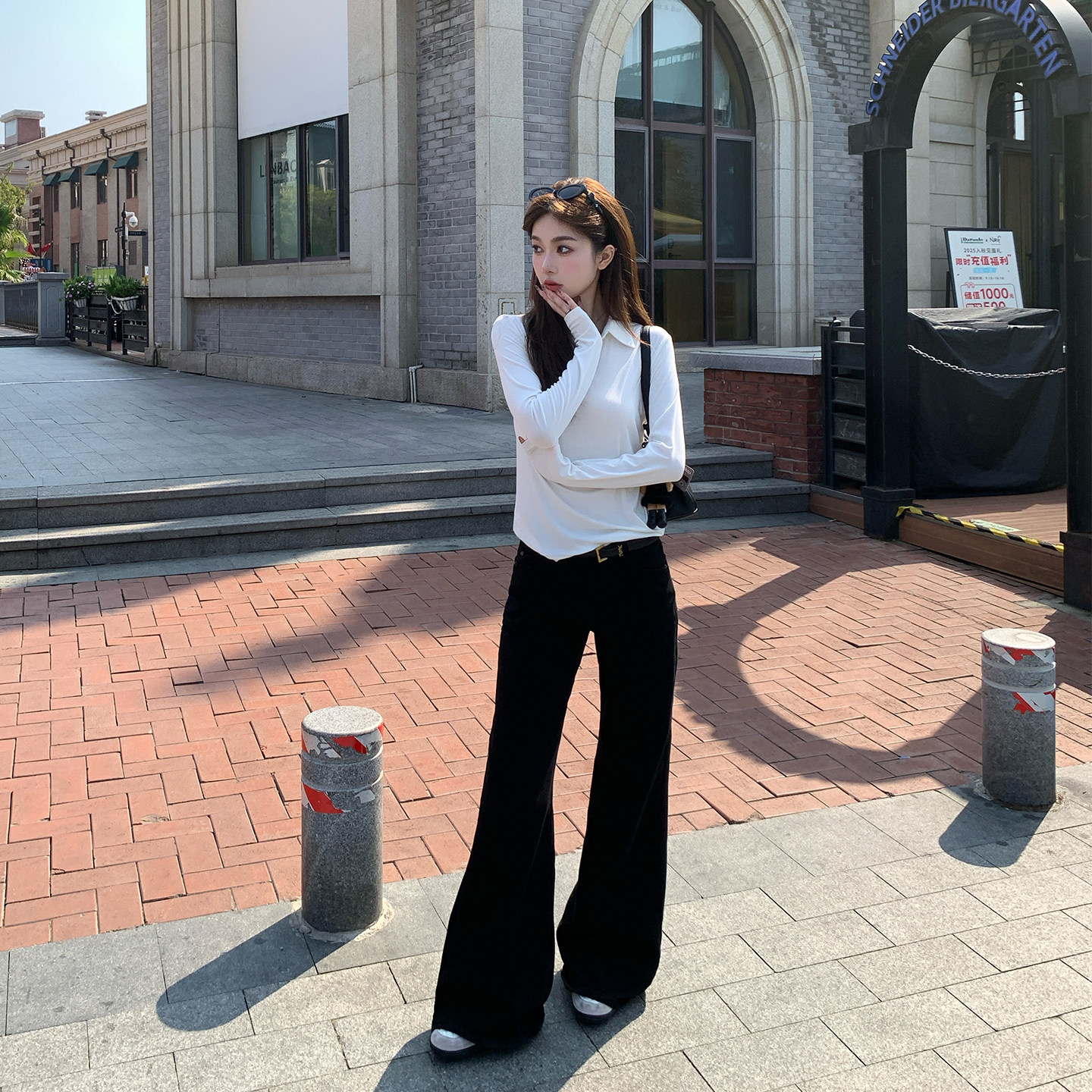 📚 alex stevens 黑色高腰微喇叭牛仔裤女春季显瘦阔腿裤宽松长裤子