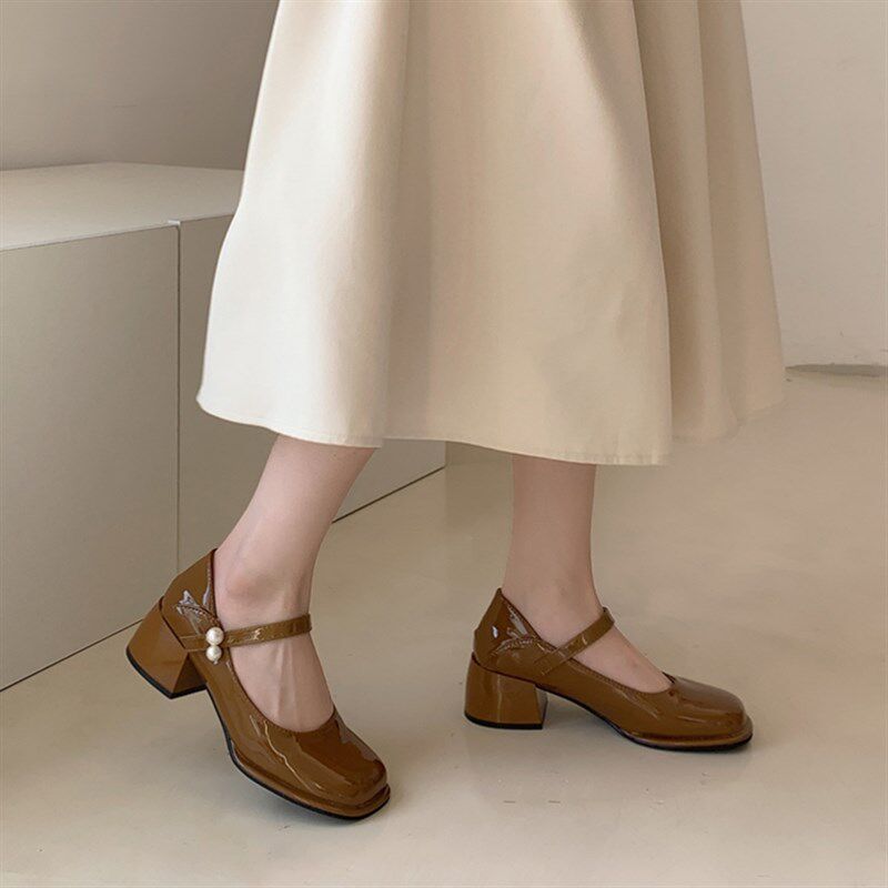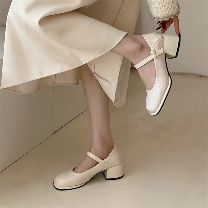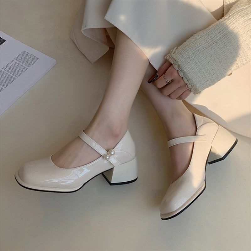 📚 法式晚风单鞋女赫本风温柔中粗跟玛丽H珍女鞋优雅淑女小皮鞋高跟