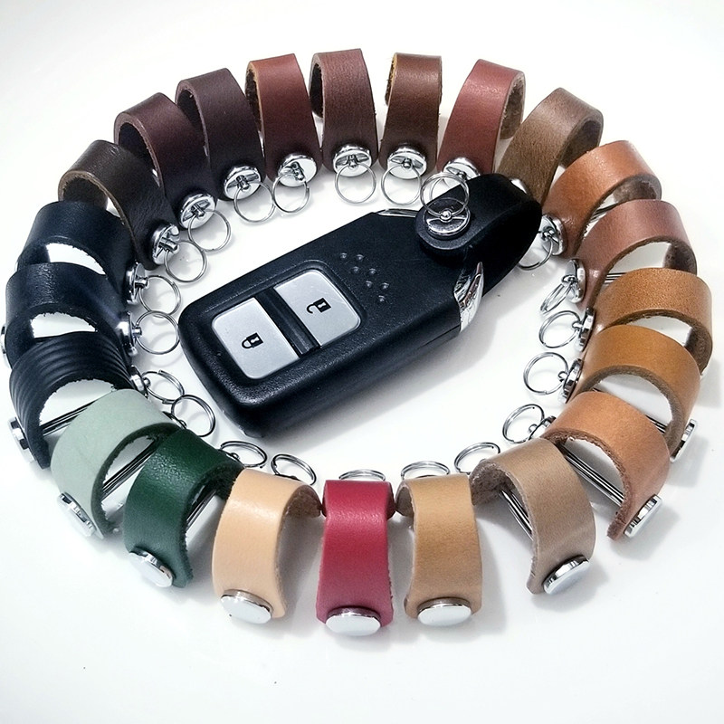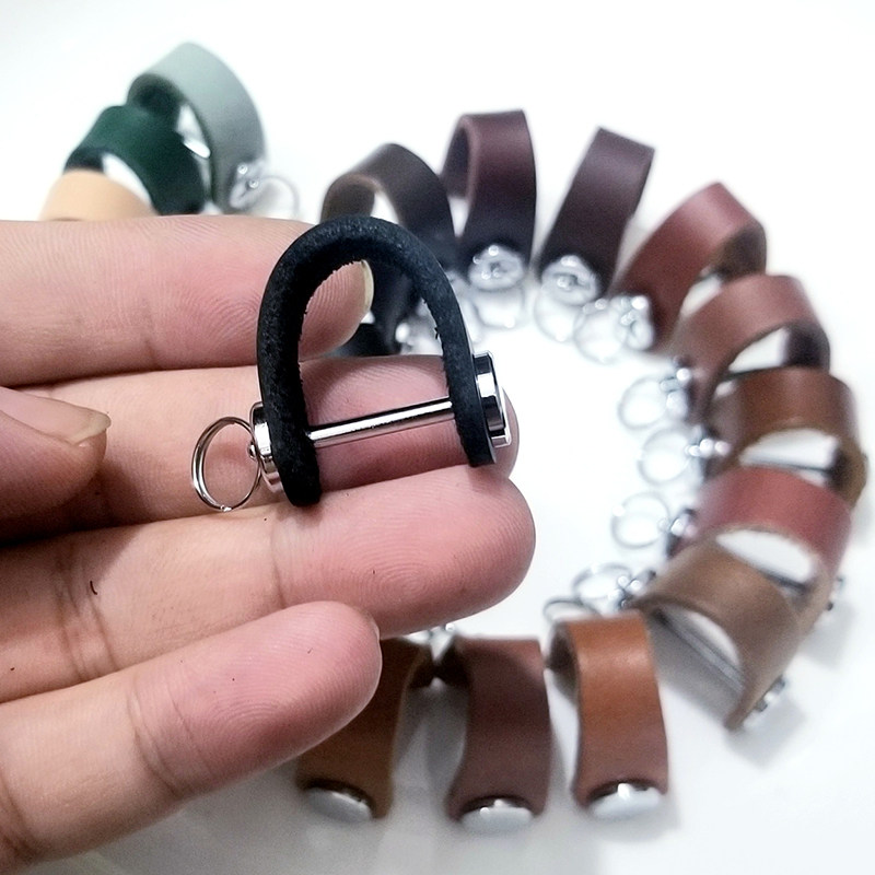 📚 马蹄D扣真防丢环汽车男女士钥锁匙牛皮圈蹬手带包套壳链绳子挂腰