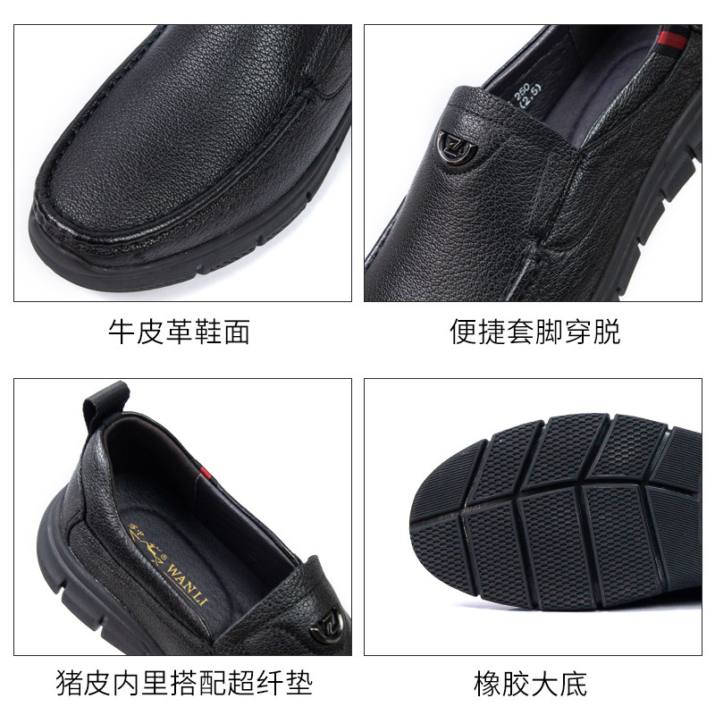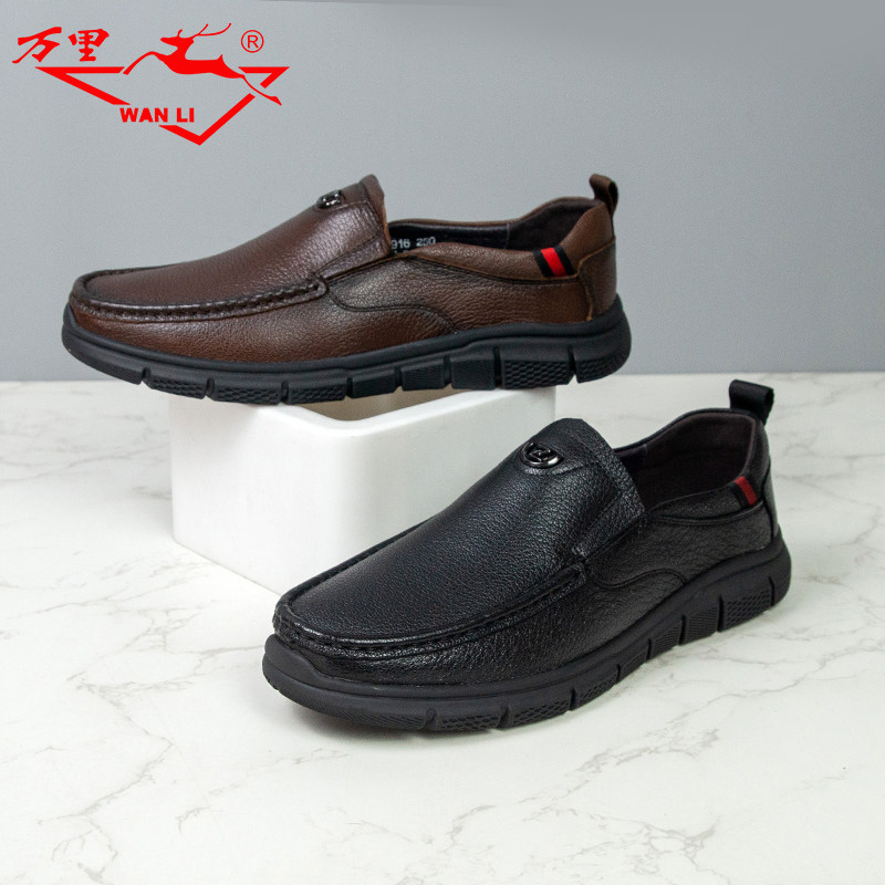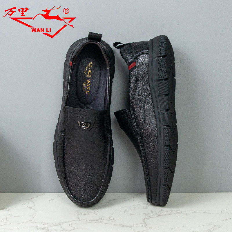 📚 万里新款商务休闲真皮鞋舒适平底日常穿一脚蹬男单鞋KET1915