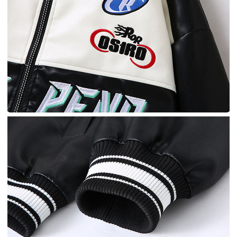 📚 350斤300斤美式PU皮皮衣男大码春秋季潮牌胖子机车服赛车夹克外套