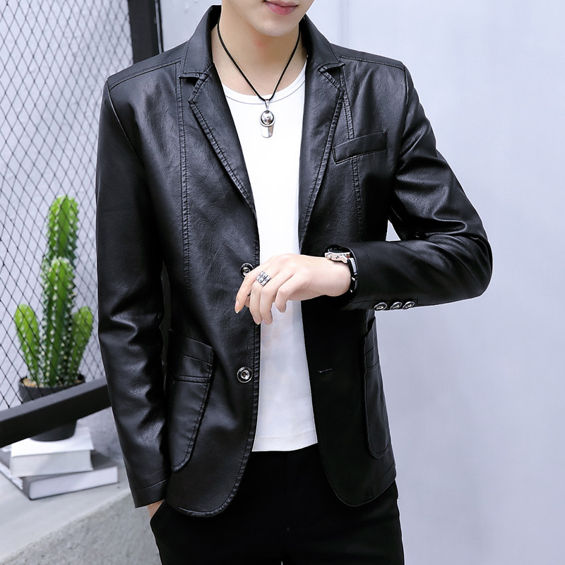 📚 皮西装男宽松韩版英伦风帅气皮衣服2024秋季新款单仿真皮衣外套潮