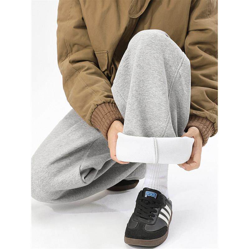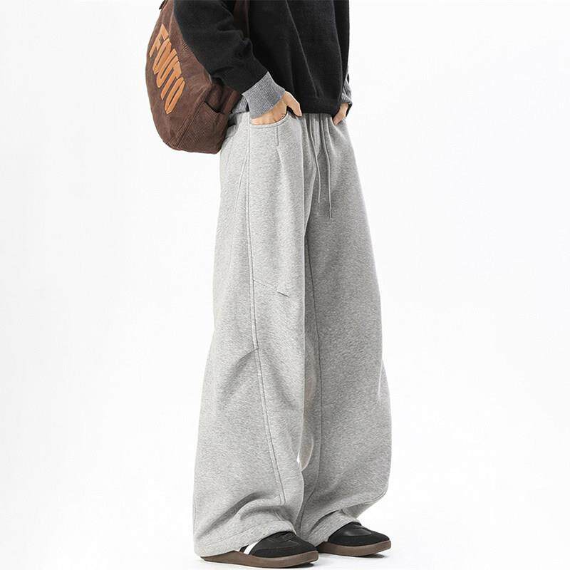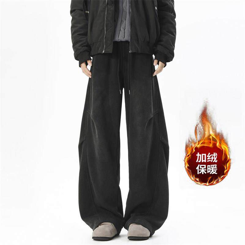 📚 轻奢新款美式水洗褶皱加绒卫裤男冬潮牌解构百搭弯刀裤重磅休闲裤