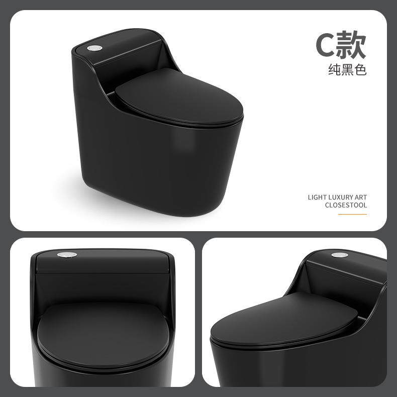 📚 直销新款家用彩色马桶大冲力创意黑色陶瓷抽水喷射虹吸式卫生间飞