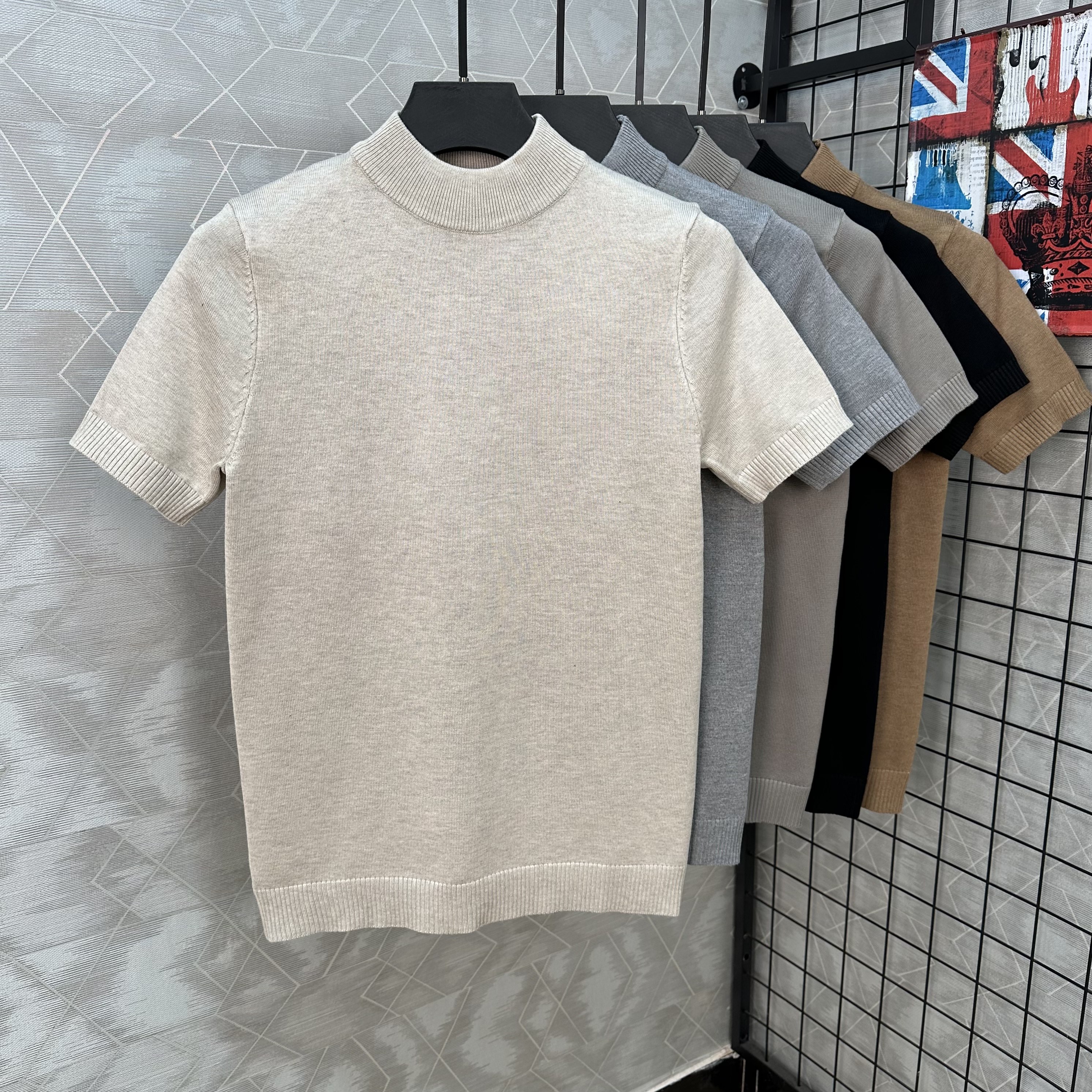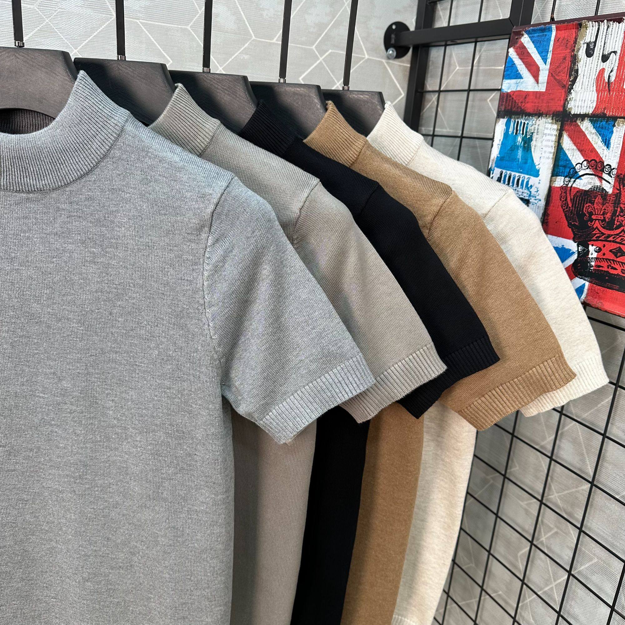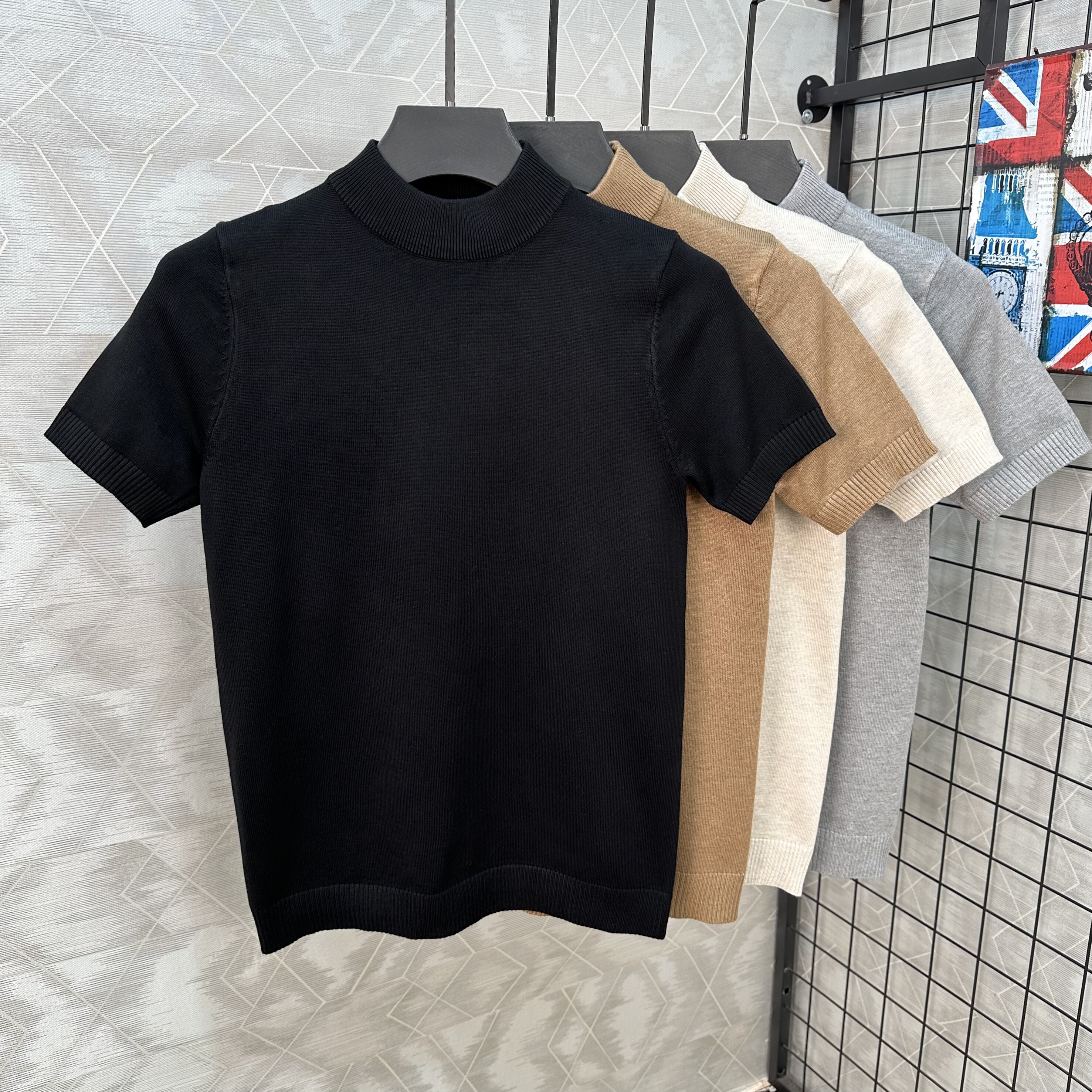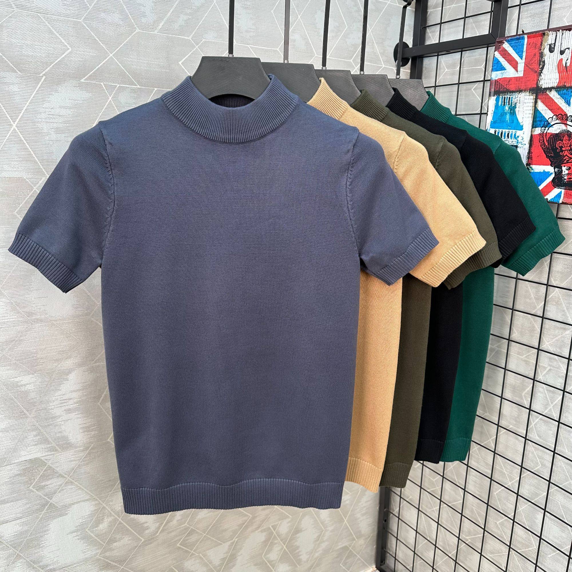 📚 秋冬韩版修身男士半高领短袖T恤型男紧身弹力针织衫圆领打底线衫