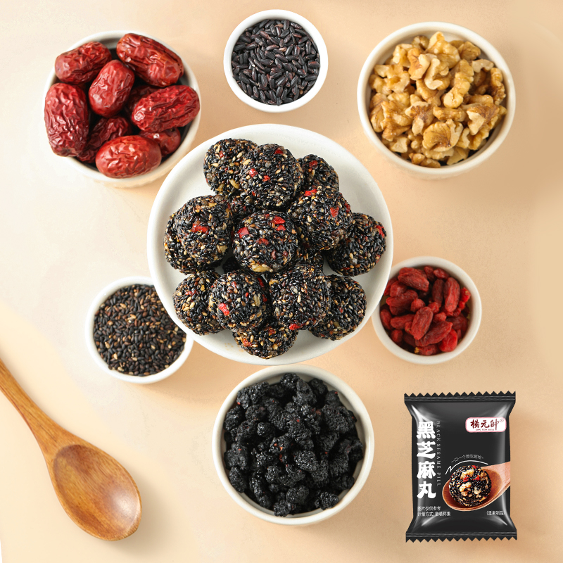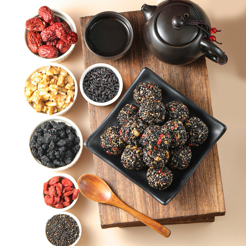 📚 黑芝麻丸球核桃桑葚红枣枸杞黑之养黑无添加0蔗糖健康零食品整箱