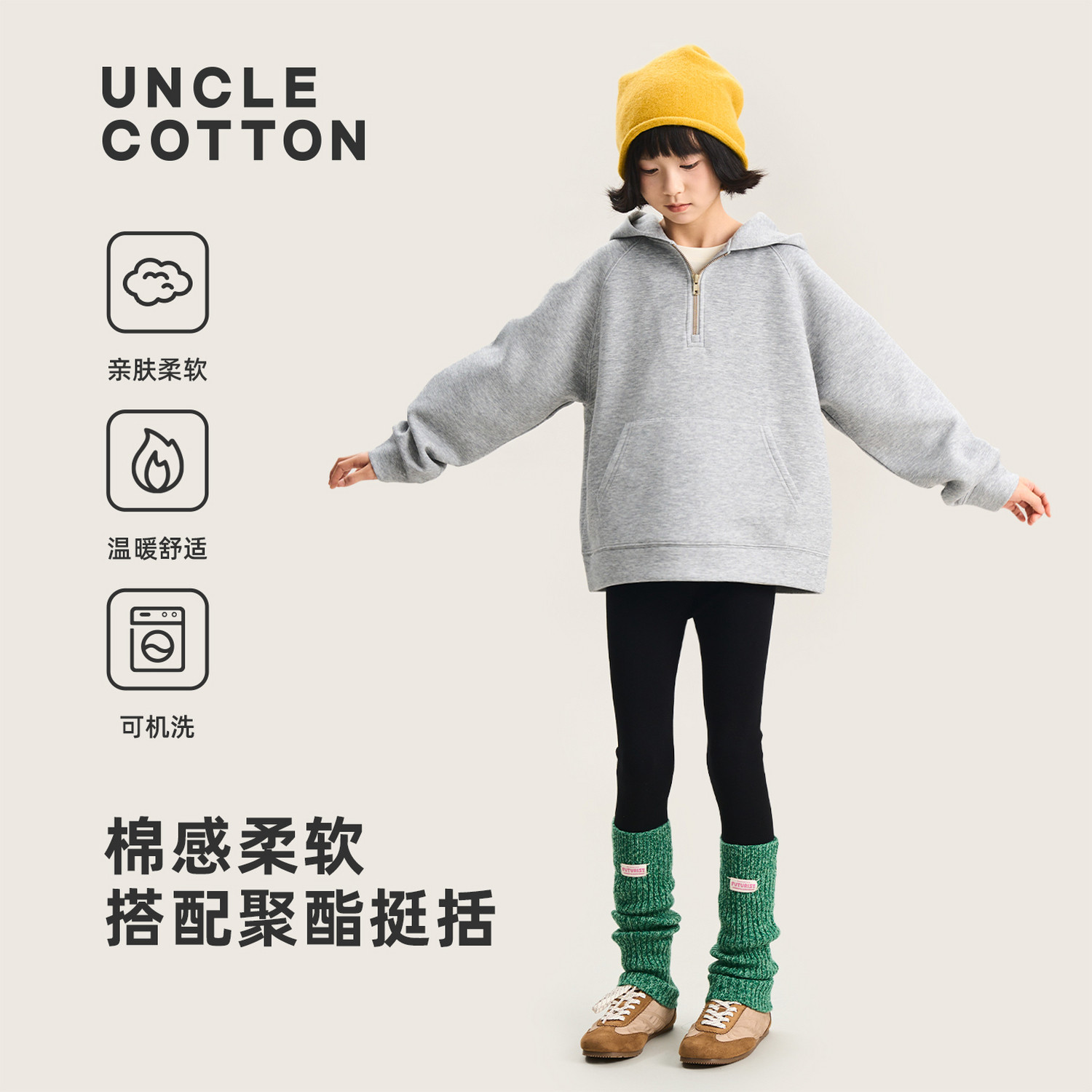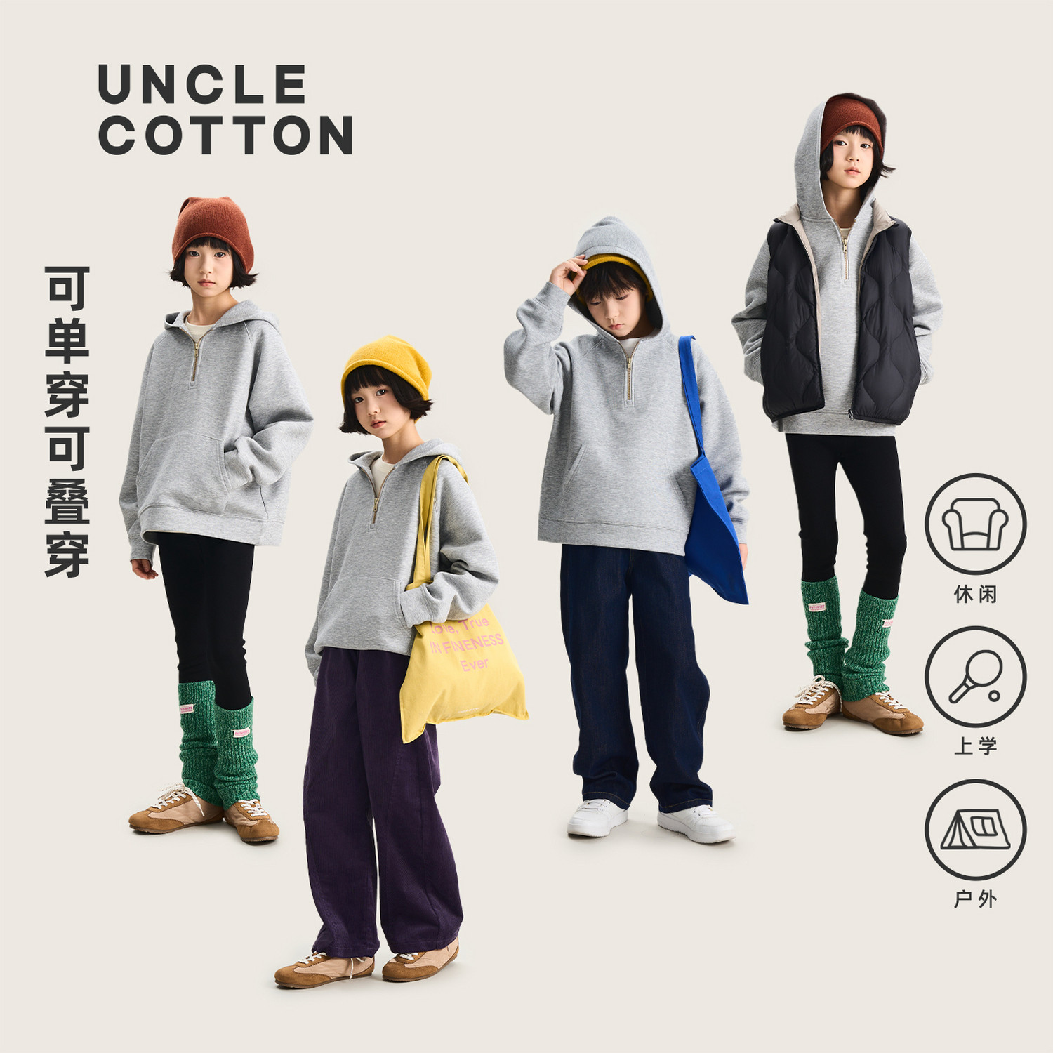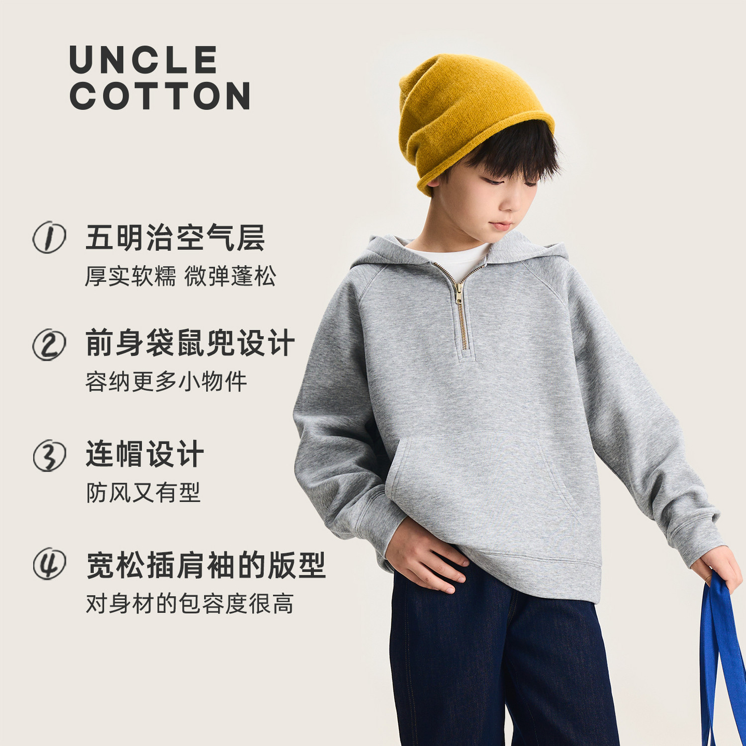 📚 【五明治空气层连帽卫衣】棉叔叔女大童宽松软糯空气层廓形上衣