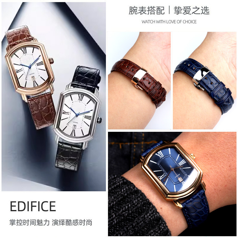 📚 鳄鱼皮表带适配罗西尼男款3401女款2402情侣真皮手表带蝴蝶扣配件
