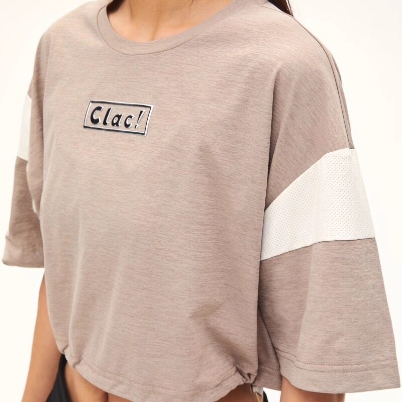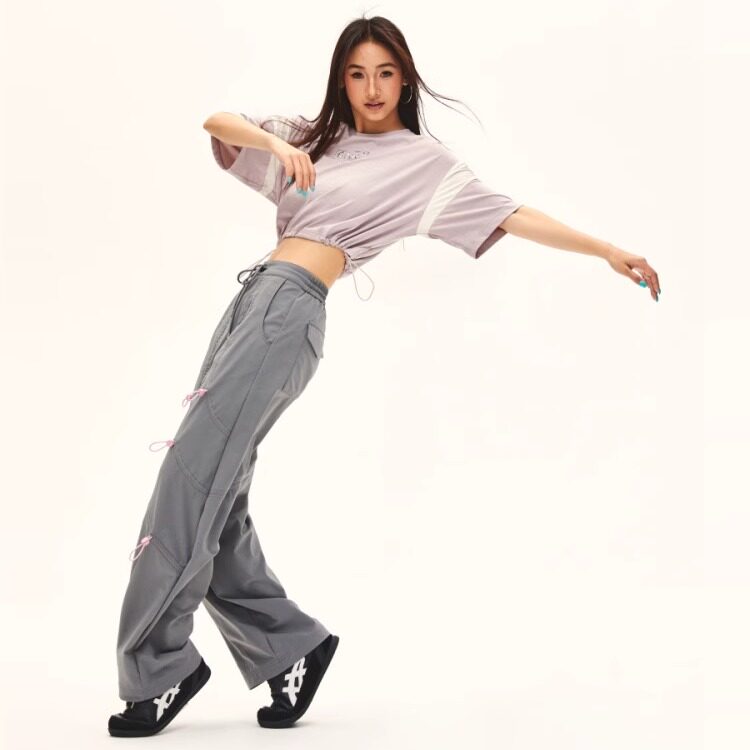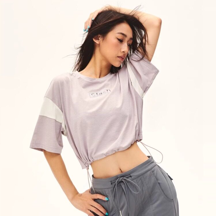 📚 轻薄透气弹力宽松版高腰抽绳冰丝网眼拼接运动短袖T恤女
